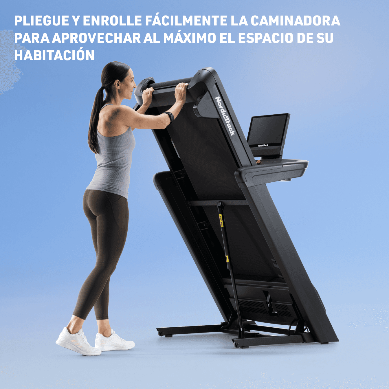 Pliegue y mueva fácilmente la cinta de correr con el diseño SpaceSaver™