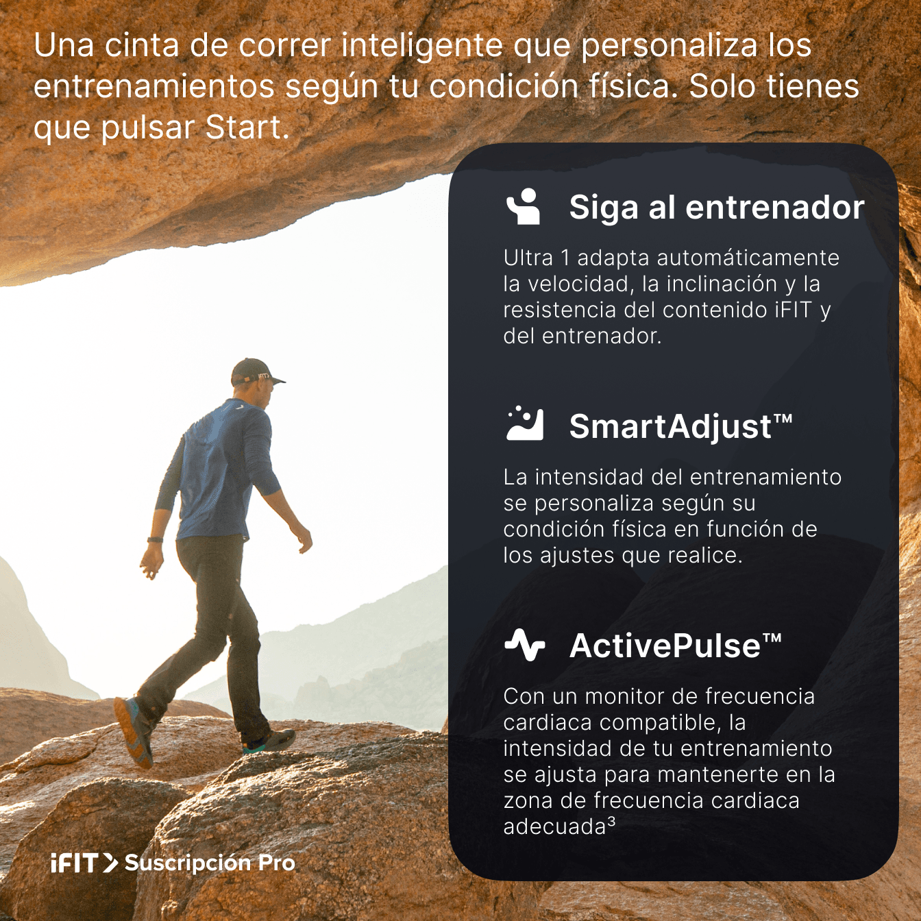 - Se requiere suscripción iFIT y un monitor de frecuencia cardíaca compatible (se vende por separado). Disponible solo con cintas de correr.