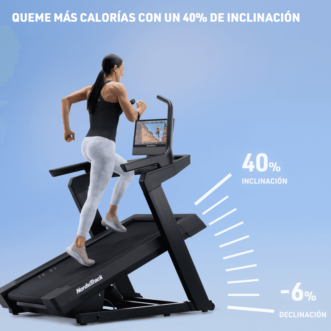 Inclinación del 40% a -6% de declinación para más intensidad y variedad