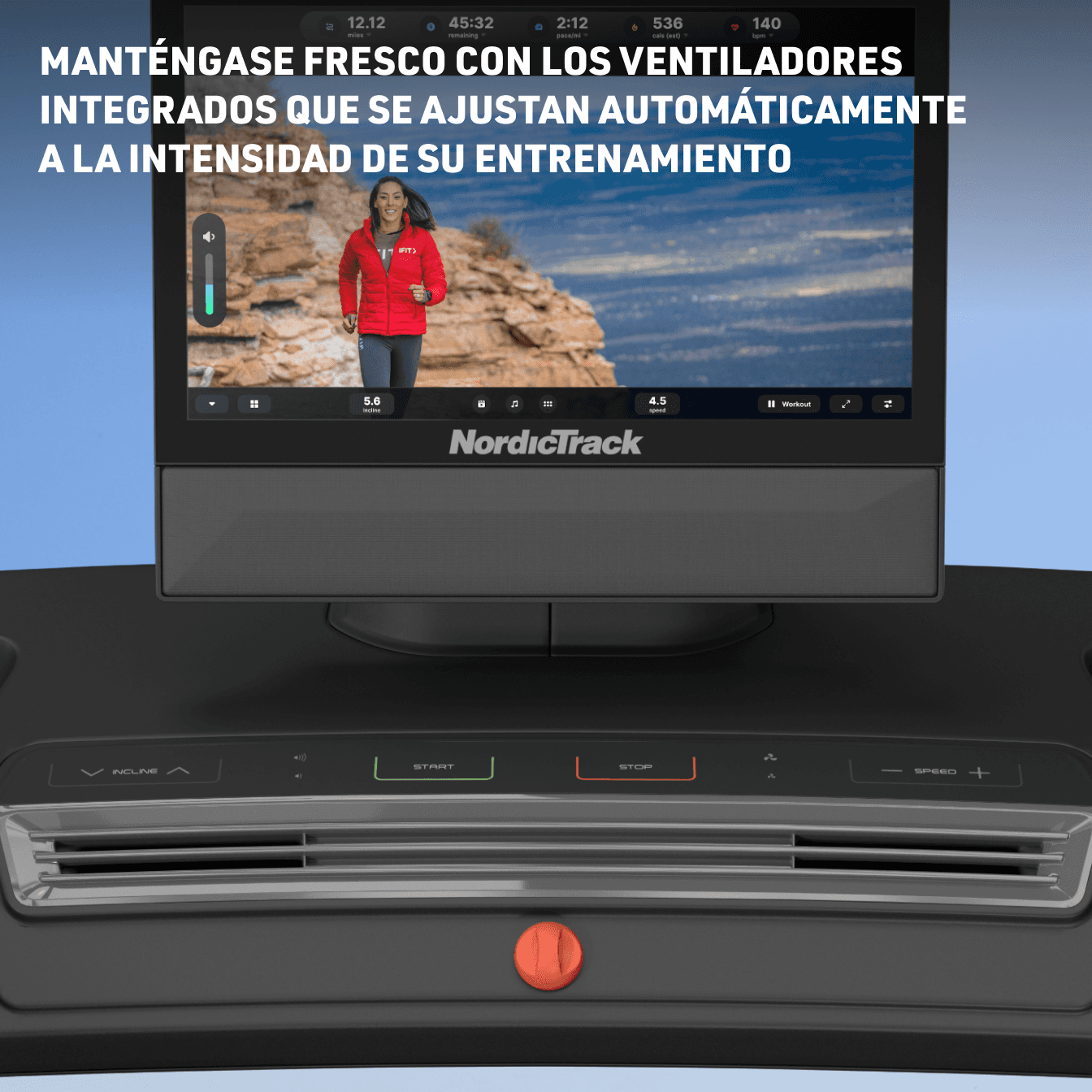 El ventilador AutoBreeze™ cambia la intensidad para adaptarse al entrenamiento