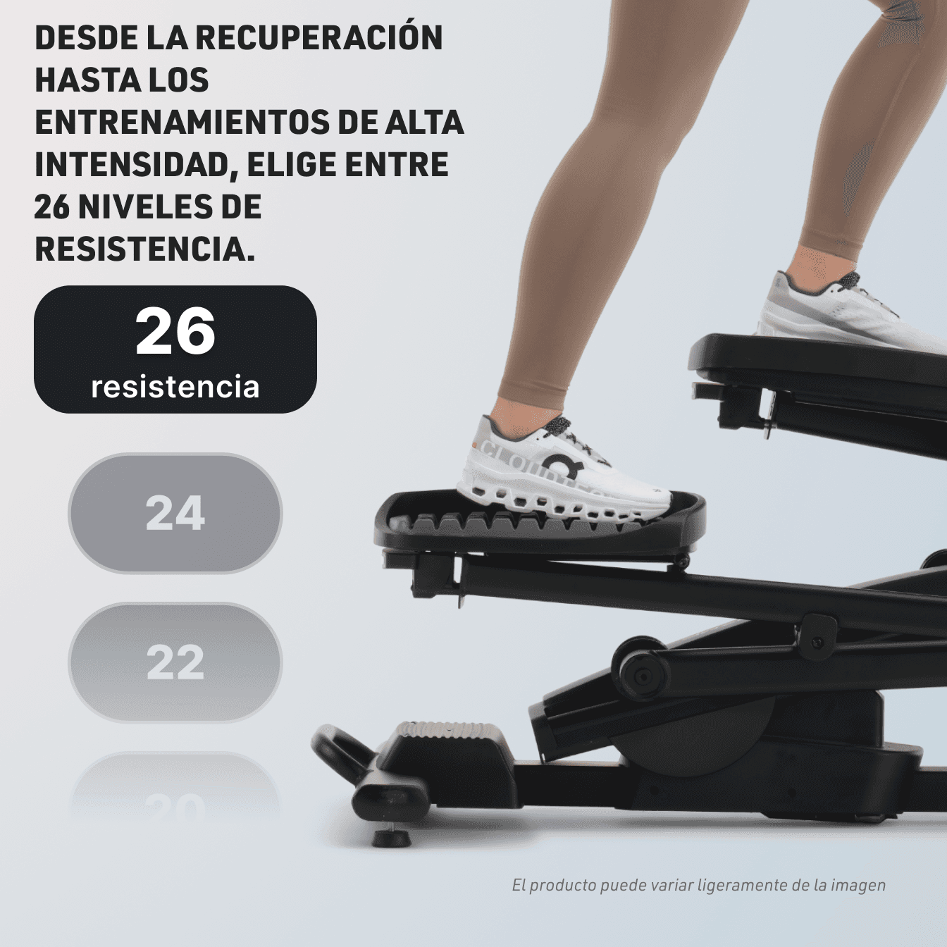 Los 26 niveles de resistencia digital proporcionan el entrenamiento que su cuerpo necesita. Desde recuperación hasta alta intensidad, puede elegir la resistencia digital que necesita para alcanzar sus objetivos.