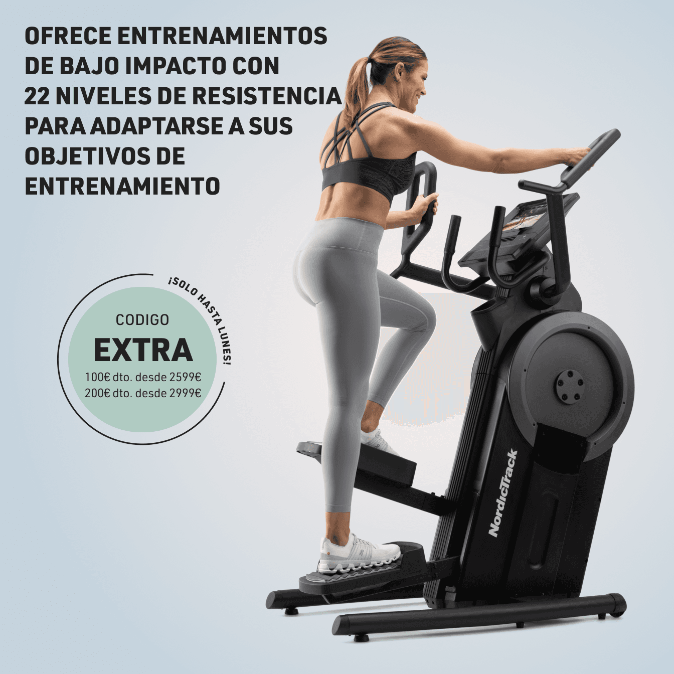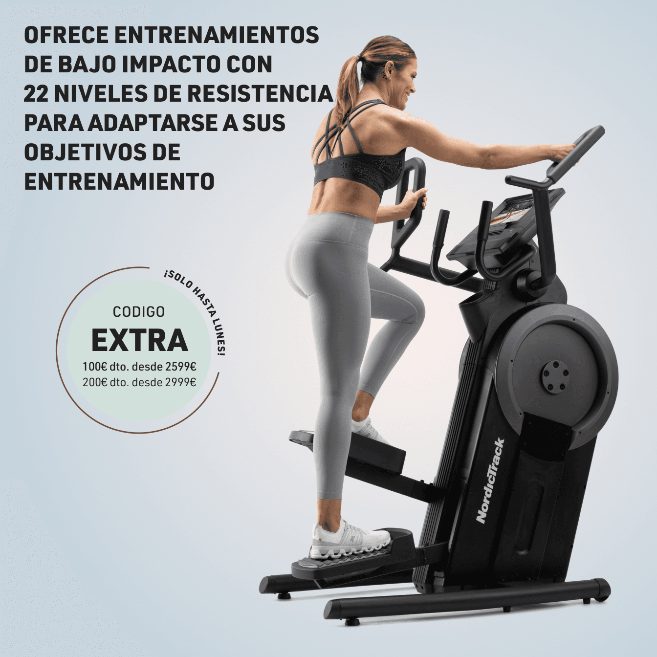 Alcance sus objetivos con entrenamientos de bajo impacto en escaleras. Fortalezca la parte inferior del cuerpo con 22 niveles de resistencia para una activación óptima de glúteos y cuádriceps. Junto con iFIT, sumérjase en impresionantes entrenamientos alrededor del mundo en nuestra pantalla táctil de 10”.