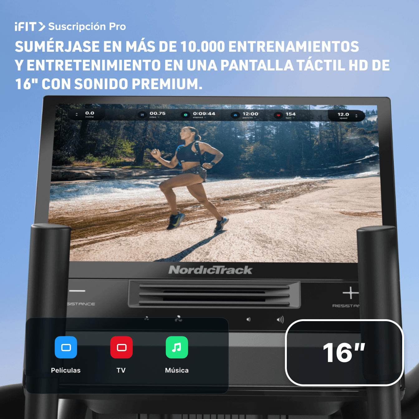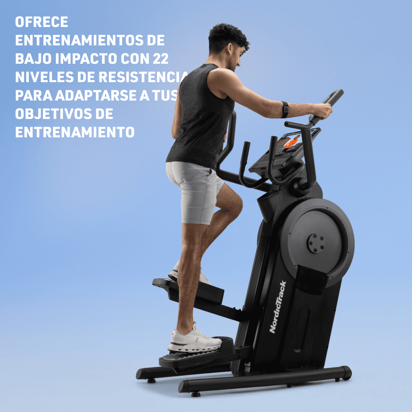 Ascienda a nuevas alturas con entrenamientos de bajo impacto y escalón. Fortalezca su tren inferior con 22 niveles de resistencia para una activación óptima de glúteos y cuádriceps. Junto con iFIT, sumérjase en impresionantes entrenamientos alrededor del mundo en nuestra pantalla táctil de 16”.