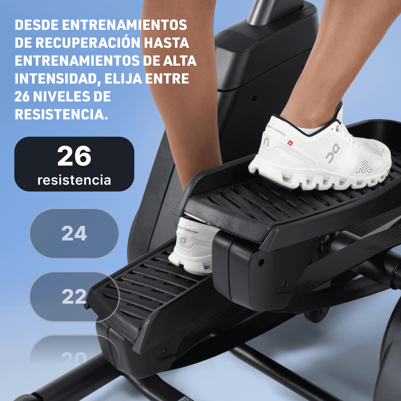 Añada más variedad a su rutina con entrenamientos de bajo impacto. Maximice su rendimiento con niveles de resistencia para recuperación y entrenamiento de alta intensidad.