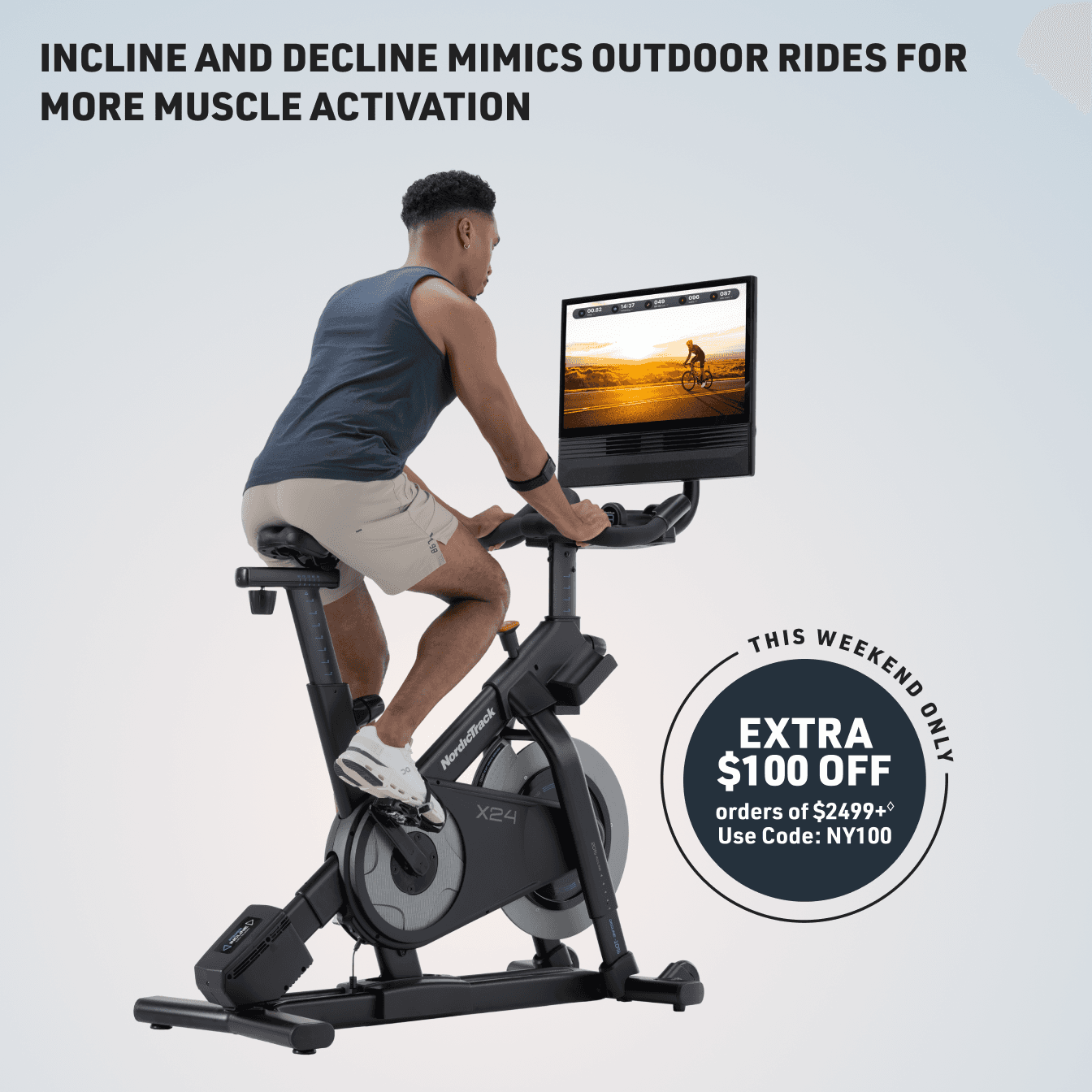 ◊Extra $100 off orders $2,499+ offer (“Offer”) available December 26, 2025 through December 29, 2025 until 11:59PM MST for U.S. residents, 18+. Discount only applies to the subtotal of order at Home and Exercise Equipment by NordicTrack - Treadmills, Ellipticals, and More and will not apply to taxes or shipping or other charges. Offer is not transferable, substitutable, not redeemable for cash or account credit, has no cash value, and will not be applied retroactively. Void where prohibited. Must enter NY100 promo code at checkout to obtain discount. Limit one per customer. Offer excludes Ultra Series products. NordicTrack reserves the right to end, revise, modify, or extend this Offer or its terms at any time without notice. NordicTrack is not responsible for any Offer errors, including tech errors.
