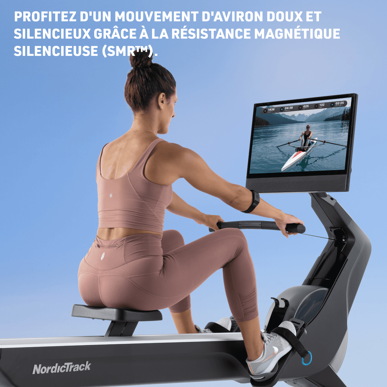 Trouvez votre rythme grâce à un mouvement d'aviron doux et silencieux créé par la résistance magnétique silencieuse (SMR™).