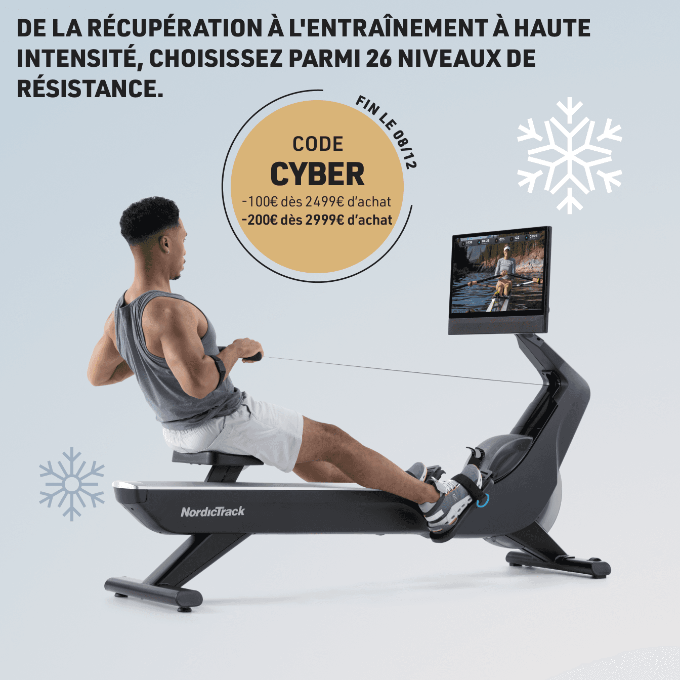 **Un mois iFIT Train inclus pour l'achat d'un abonnement iFIT Train mensuel. Renouvellement automatique de l'abonnement iFIT Train (15 €/mois). iFIT Train fonctionne uniquement sur smartphone ou tablette pour profiter d'iFIT sur votre équipement ne disposant pas d'un écran tactile. Annulable à tout moment.