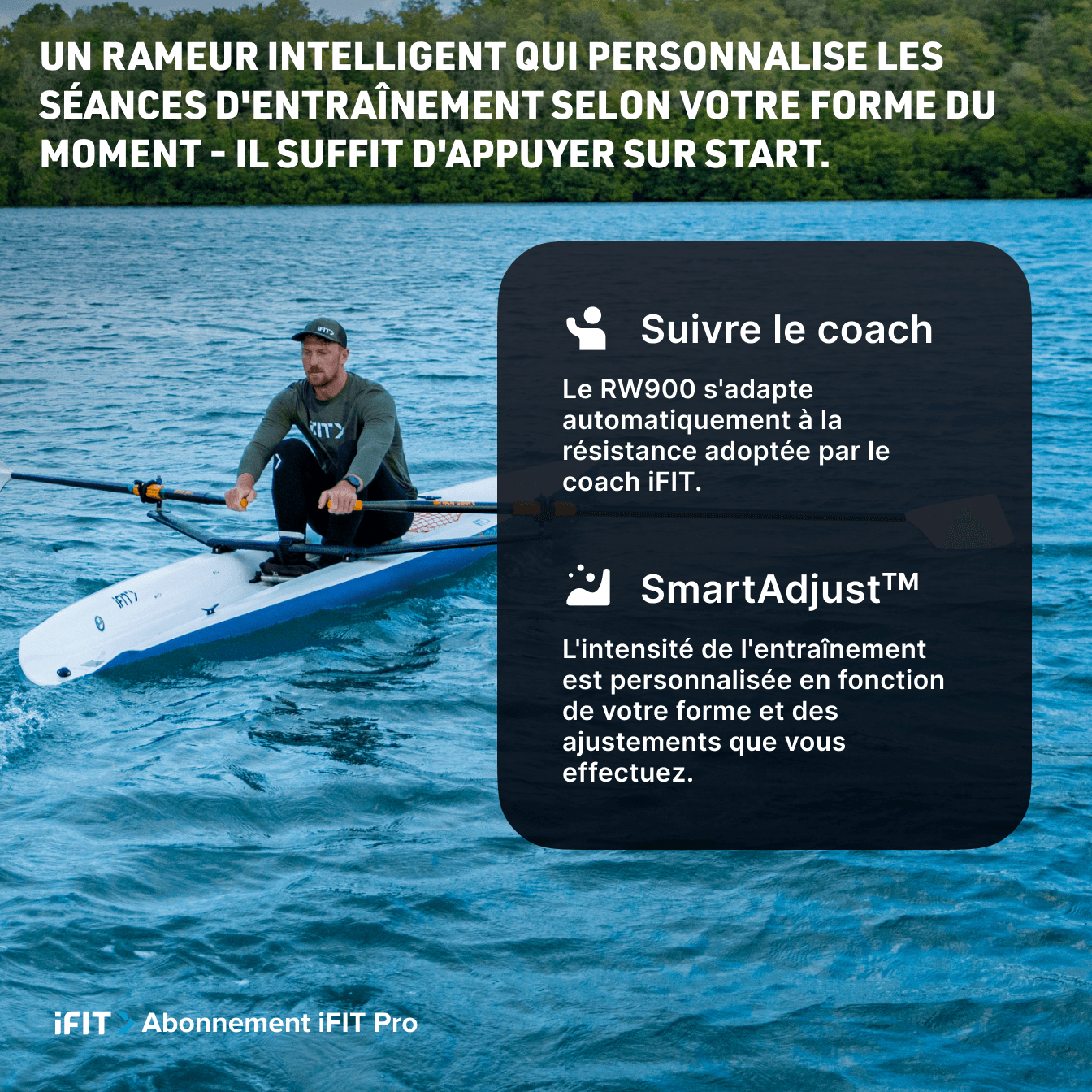 Le RW900 s'adapte automatiquement à la résistance de la séance d'entraînement iFIT. SmartAdjust™ va plus loin et personnalise chaque séance en fonction de votre forme, sur la base des ajustements que vous effectuez.