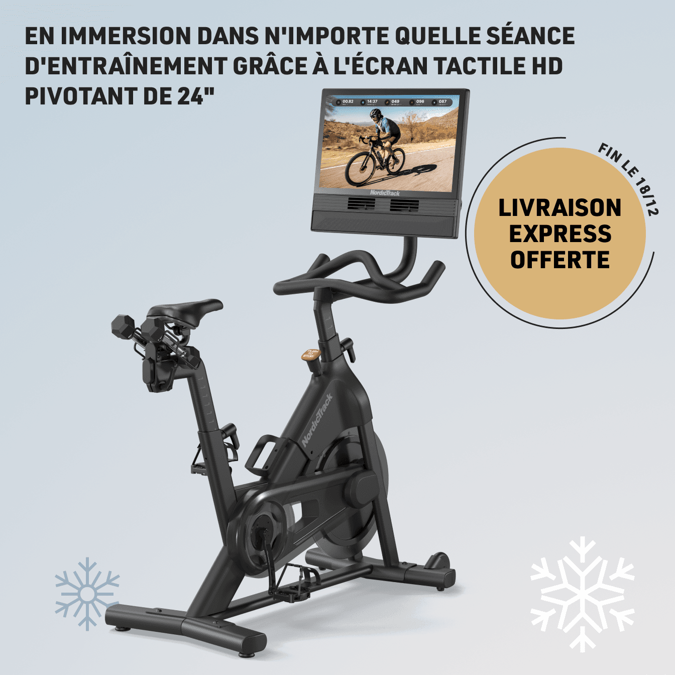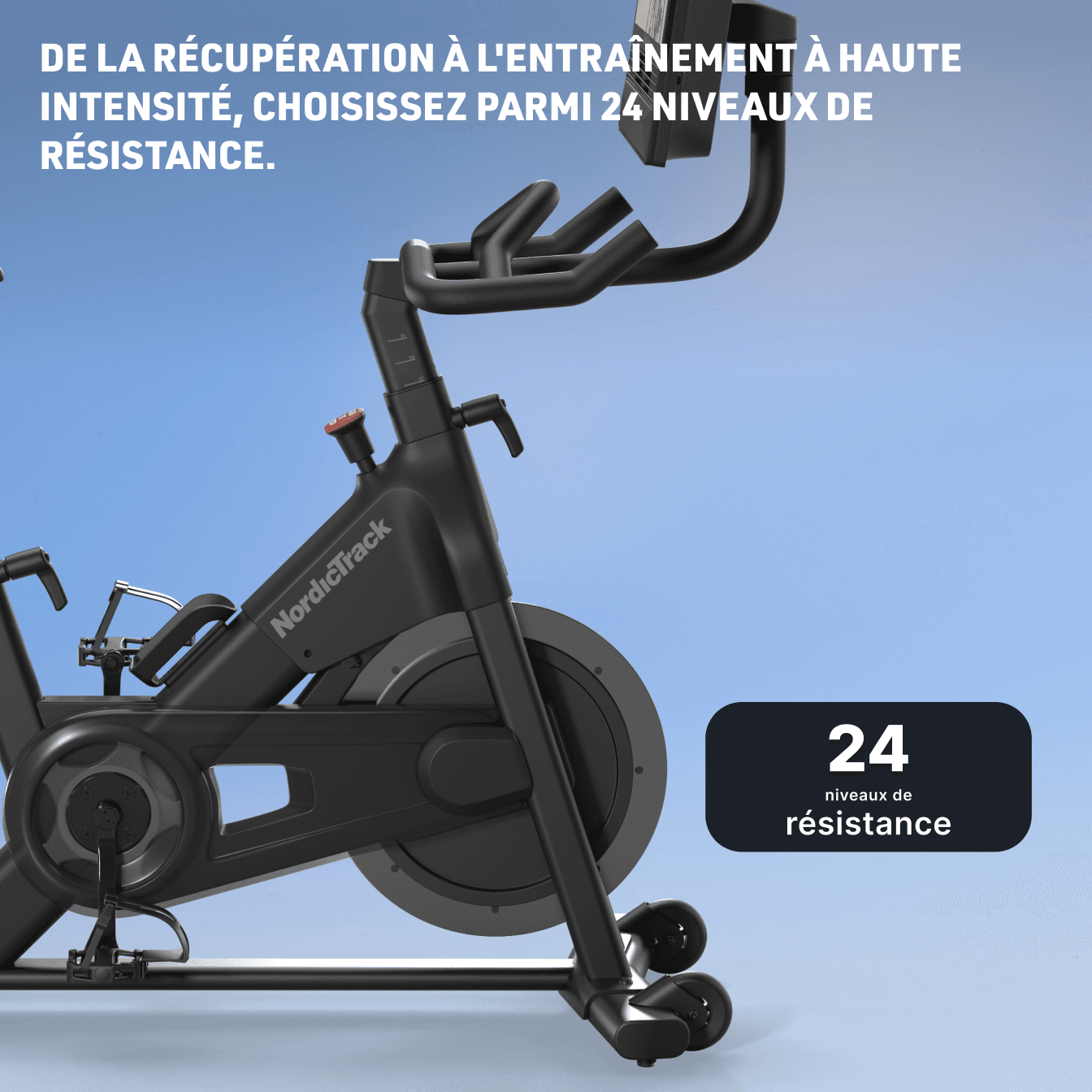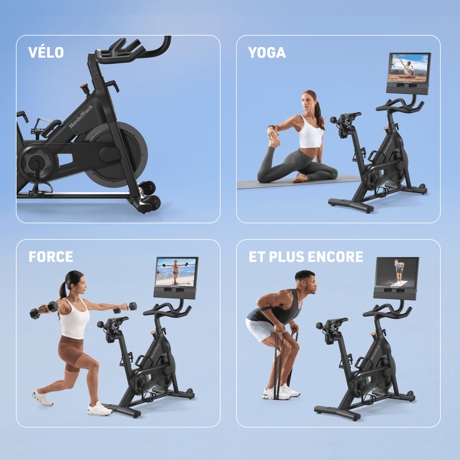 Ce vélo d'appartement offre une expérience de cyclisme inégalée. La grande plage de résistance permet aussi bien des séances de récupération que des entraînements cardio axés sur le renforcement musculaire. Le grand écran vous immerge dans les entraînements iFIT dirigés par le coach.