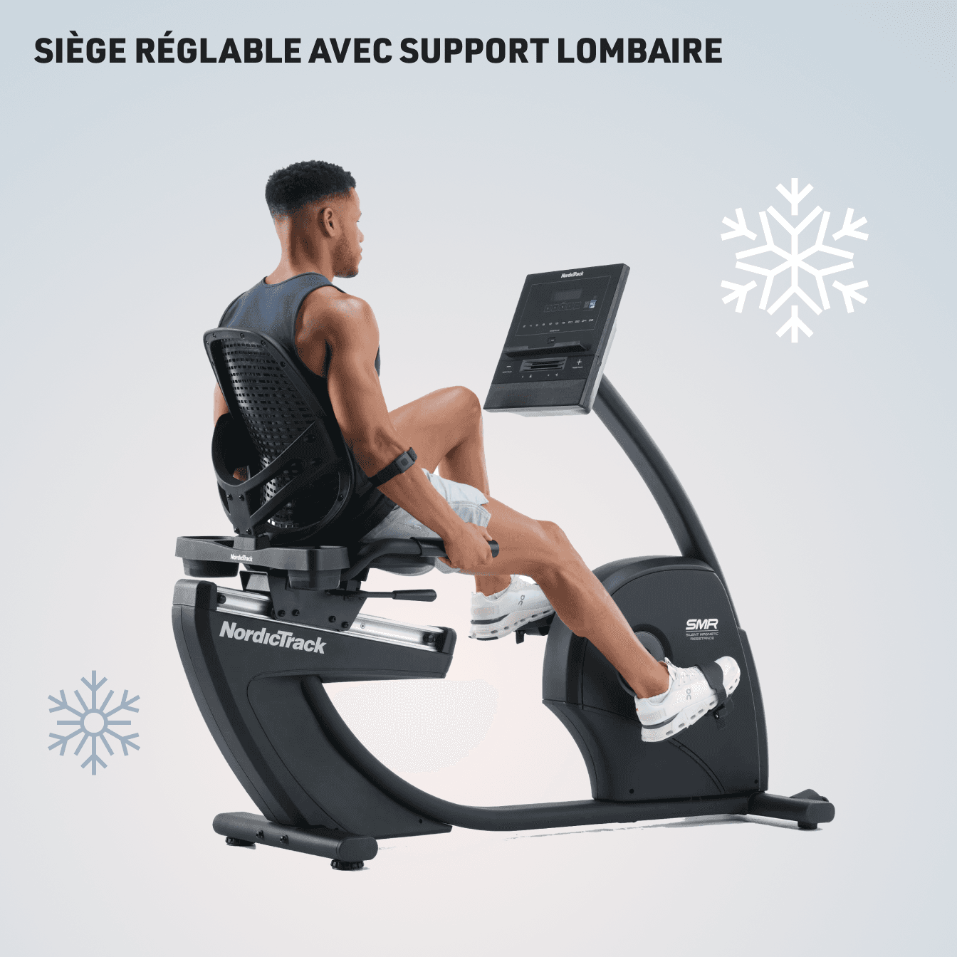 Pédales larges avec sangles réglables qui s'adaptent à la plupart des tailles de chaussuresLe vélo semi-allongé G LE s'adapte à vos besoins. Appuyez simplement sur le bouton de démarrage et iFIT s'occupe du reste.¹