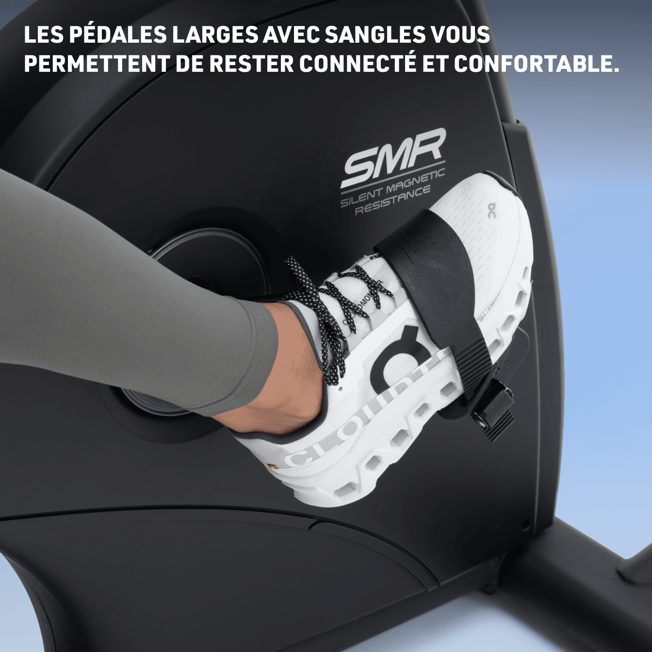 Des pédales ergonomiques extra-larges avec des sangles réglables vous permettent de rester connecté et confortable.