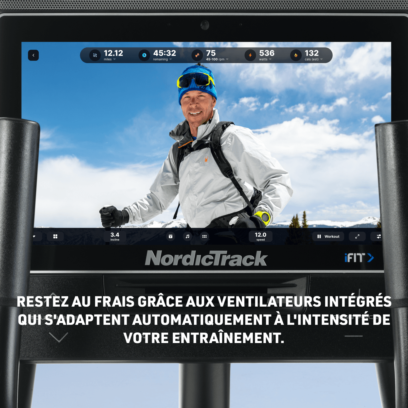 - Abonnement iFIT et capteur de fréquence cardiaque compatible requis (vendus séparément). Disponible uniquement avec les tapis de course.