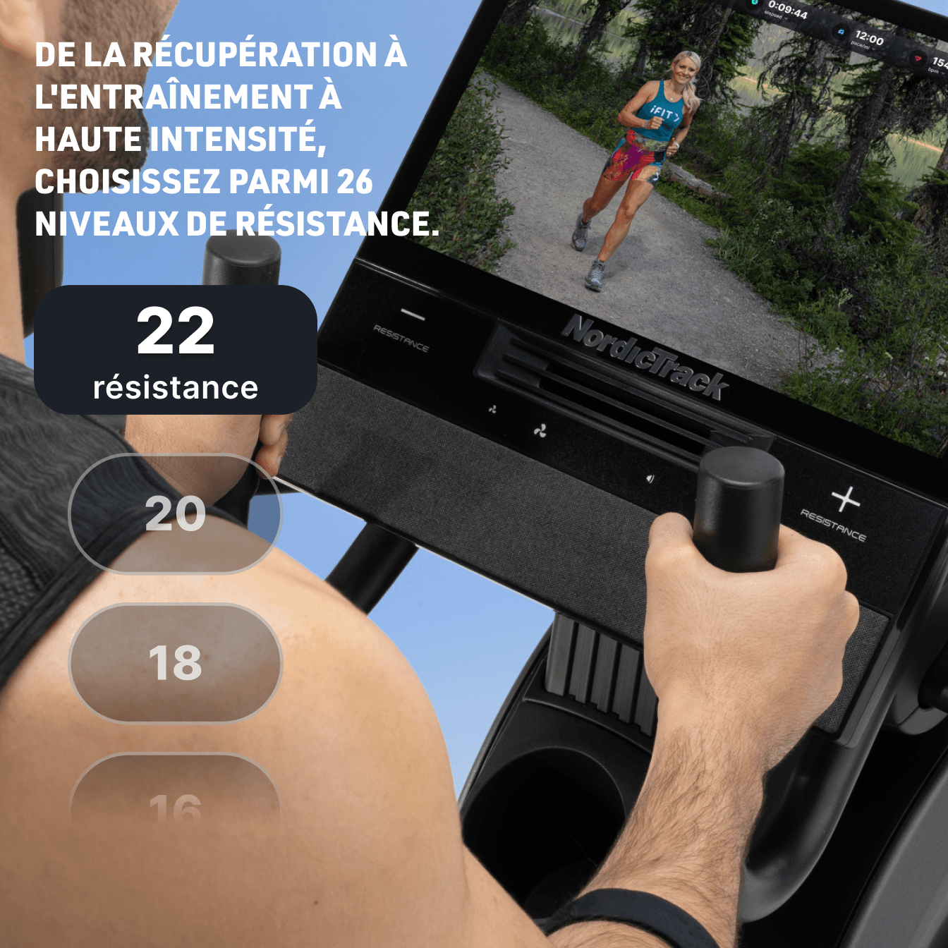 Vous trouverez l'entraînement dont votre corps a besoin grâce à 22 niveaux de résistance digitale. De la récupération à la haute intensité, adaptez la résistance à vos objectifs.