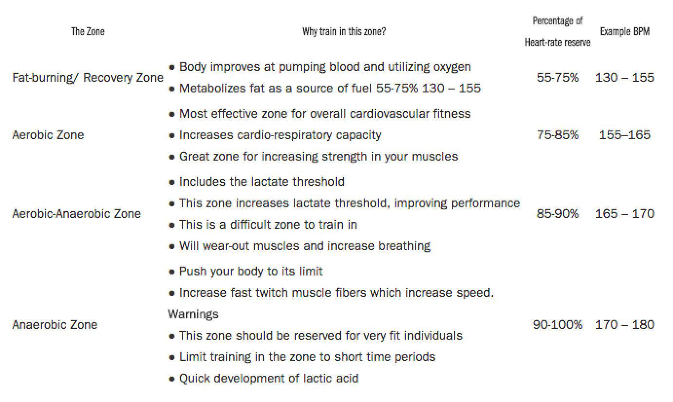 Our heart rate range can be broken into several zones. We'll discuss four of those here: