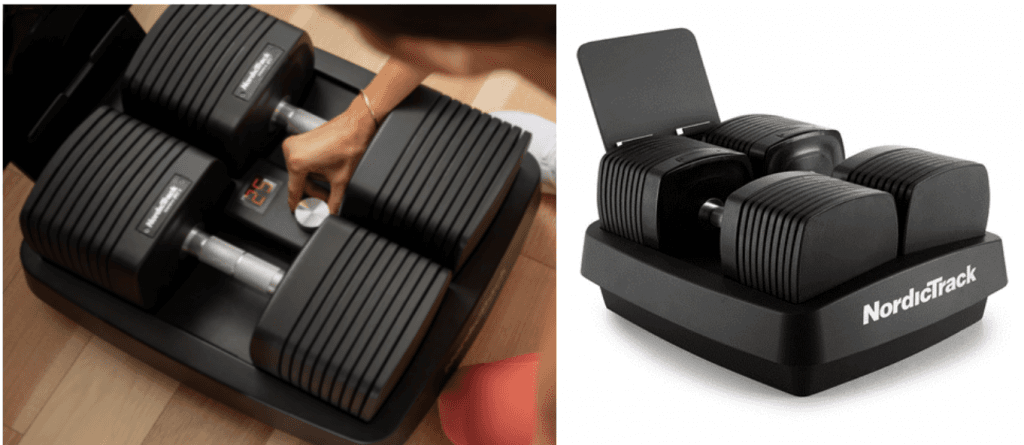 This recall is for the NordicTrack iSelect Voice-controlled Adjustable Dumbbells (model number NTSAW23020). The iSelect Adjustable Dumbbells are voice-activated motorized dumbbells with adjustable weights on each handle ranging from 5 to 50 pounds. These dumbbells were sold in black and include handles, weight plates, a tablet holder and a base. If you need help identifying whether you have an iSelect product, as opposed to other NordicTrack dumbbell sets, please contact us for further assistance.