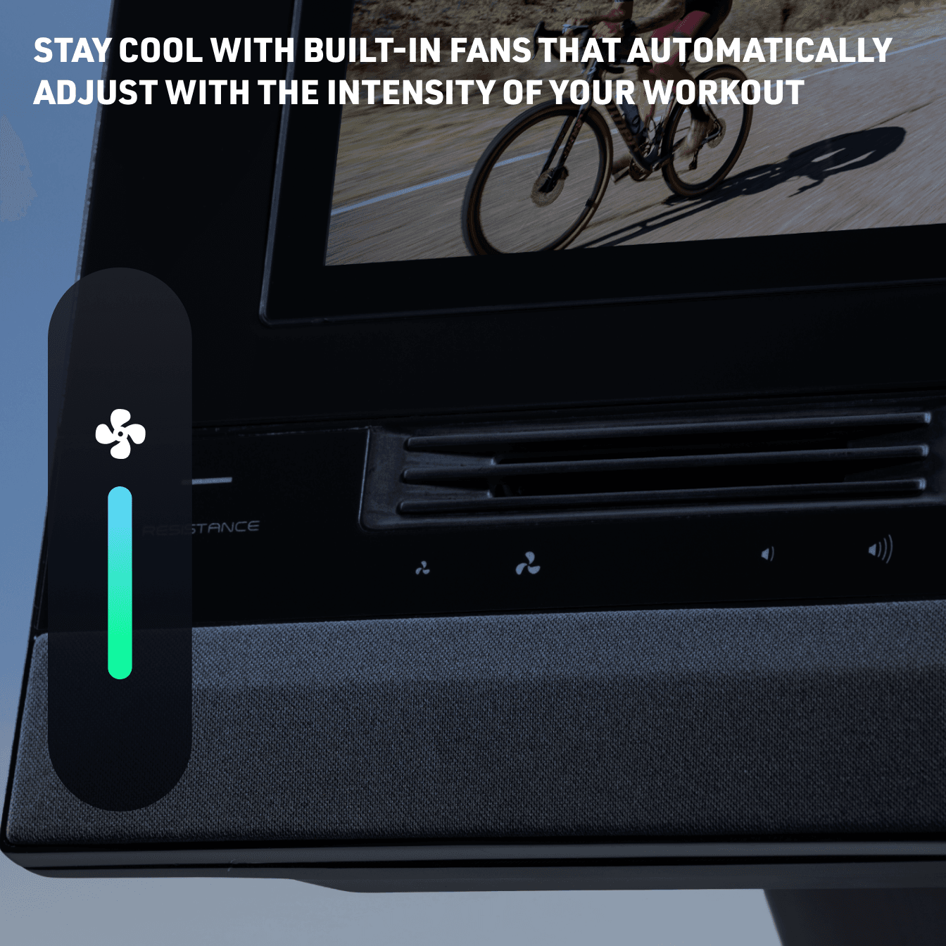 THE AUTOBREEZE™ FAN AUTOMATICALLY ADJUSTS WITH THE INTENSITY OF YOUR WORKOUT TO KEEP YOU COOL.