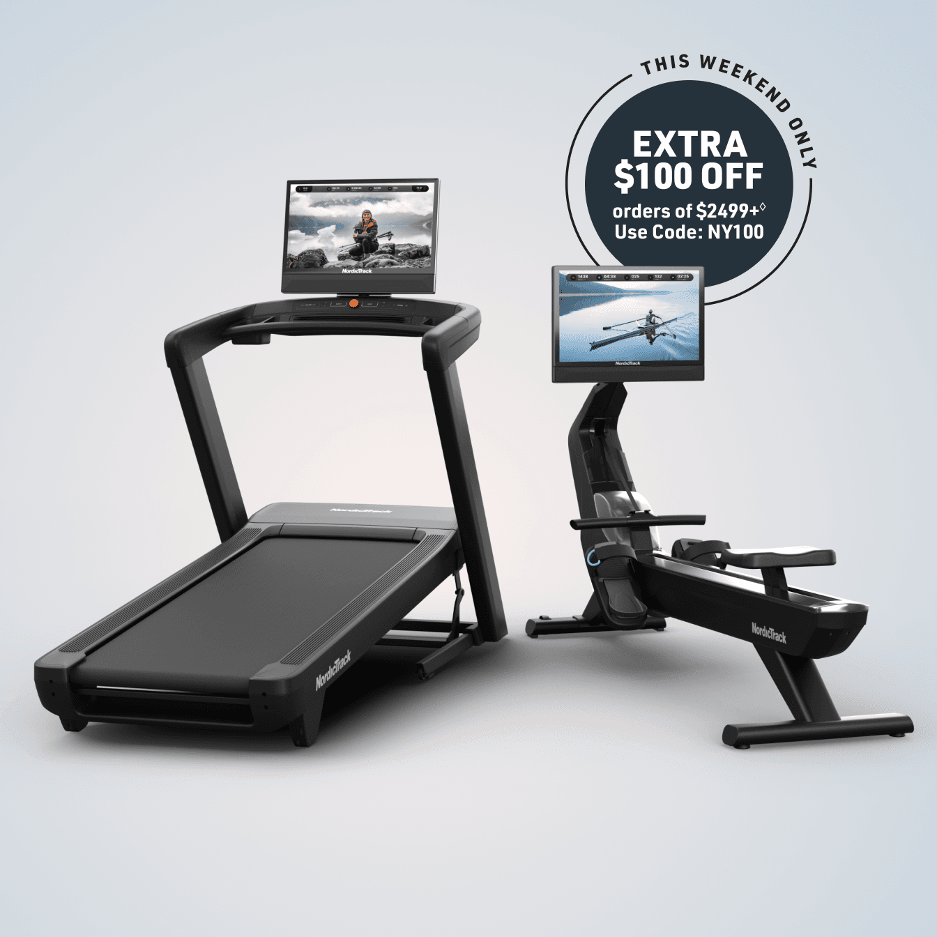 ◊Extra $100 off orders $2,499+ offer (“Offer”) available December 26, 2025 through December 29, 2025 until 11:59PM MST for U.S. residents, 18+. Discount only applies to the subtotal of order at Home and Exercise Equipment by NordicTrack - Treadmills, Ellipticals, and More and will not apply to taxes or shipping or other charges. Offer is not transferable, substitutable, not redeemable for cash or account credit, has no cash value, and will not be applied retroactively. Void where prohibited. Must enter NY100 promo code at checkout to obtain discount. Limit one per customer. Offer excludes Ultra Series products. NordicTrack reserves the right to end, revise, modify, or extend this Offer or its terms at any time without notice. NordicTrack is not responsible for any Offer errors, including tech errors.