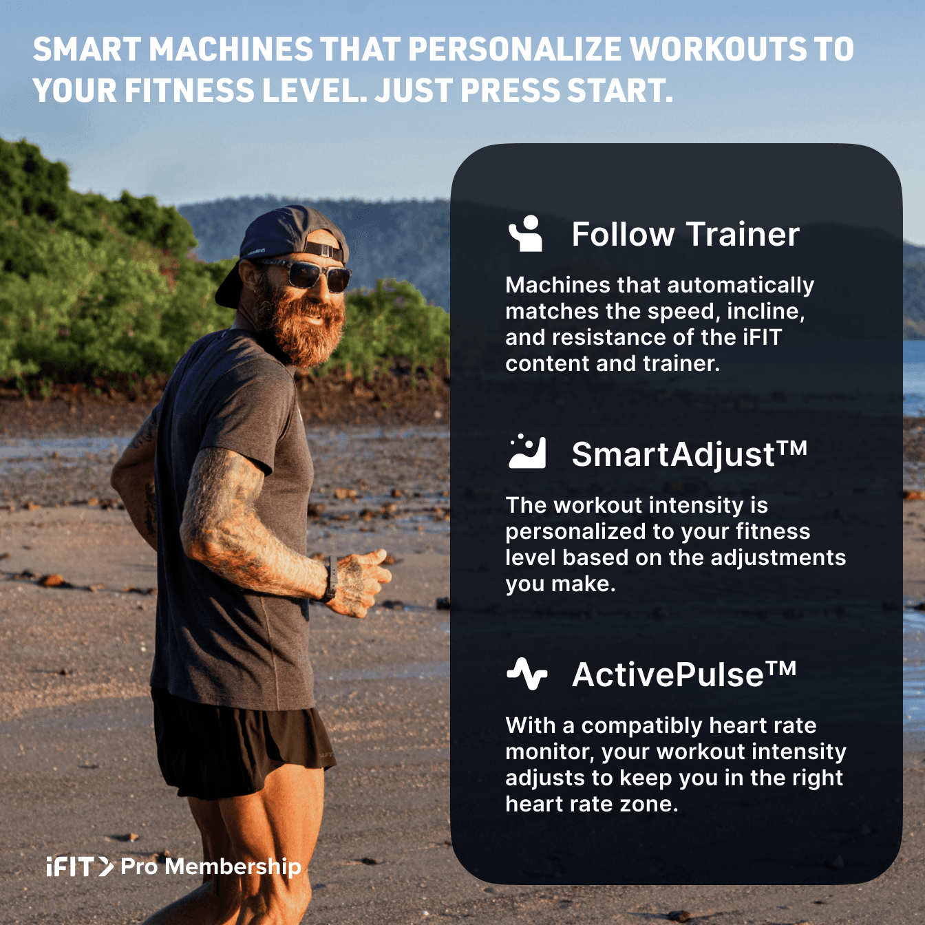 The X24 smart treadmill and X16 smart elliptical adjust for you. Just press Start and iFIT does the rest.¹