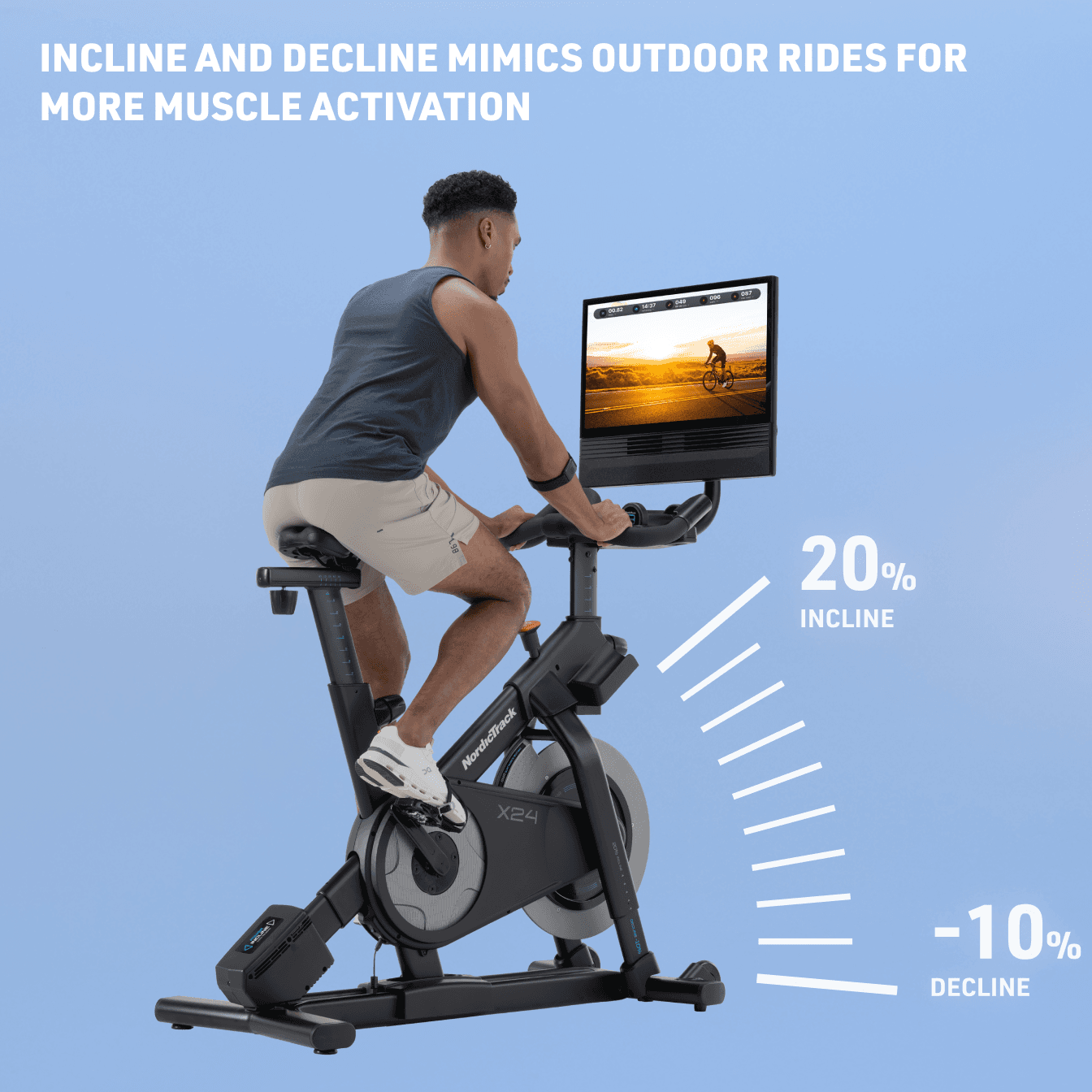 Pivoting 24” touchscreen for trainer-led workouts & streaming with iFIT¹