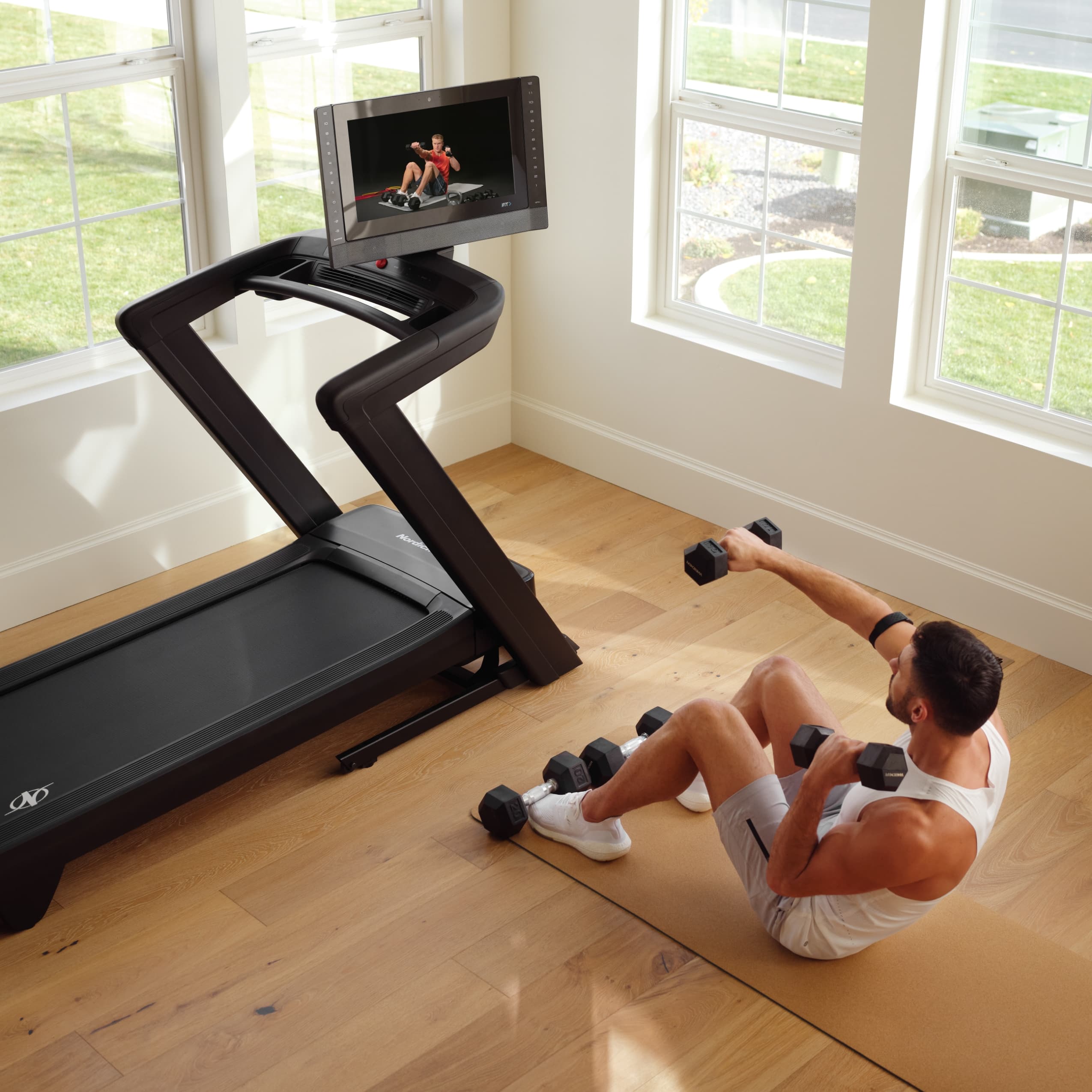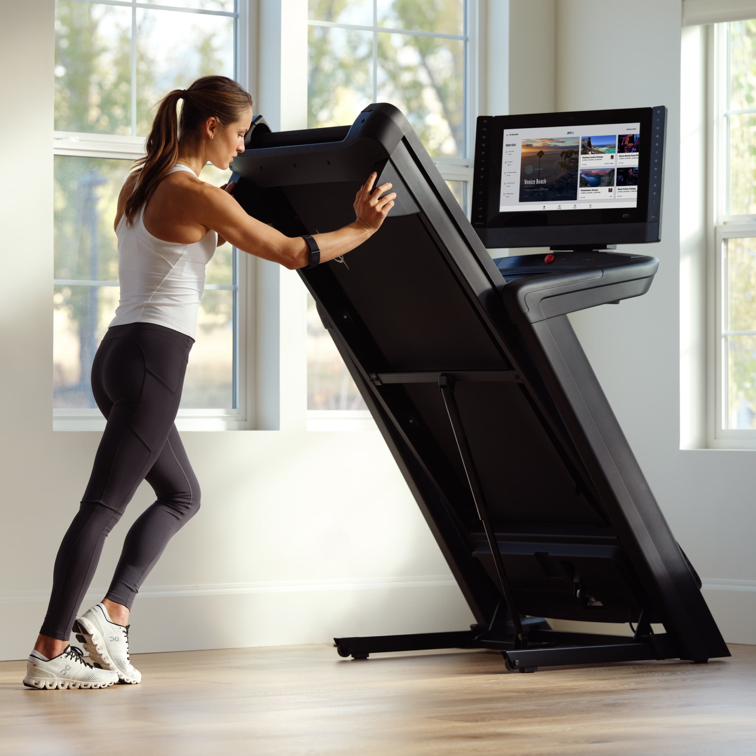 Rotate the 22” screen to round out your home gym with 1,000s of iFIT workouts – from HIIT to yoga.