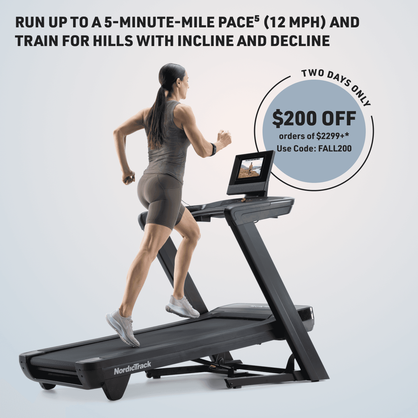 *Extra $200 off orders $2,299+ offer (“Offer”) available only from October 23, 2025 until October 24, 2025 @ 11:59PM MST for U.S. residents, 18+. Discount only applies to the subtotal of order at www.nordictrack.com and will not apply to taxes or shipping or other charges. Offer is not transferable, substitutable, not redeemable for cash or account credit, has no cash value, and will not be applied retroactively. Void where prohibited. Must enter FALL200 promo code at checkout to obtain discount. Limit one per customer. NordicTrack reserves the right to end, revise, modify, or extend this Offer or its terms at any time without notice. NordicTrack is not responsible for any Offer errors, including tech errors.