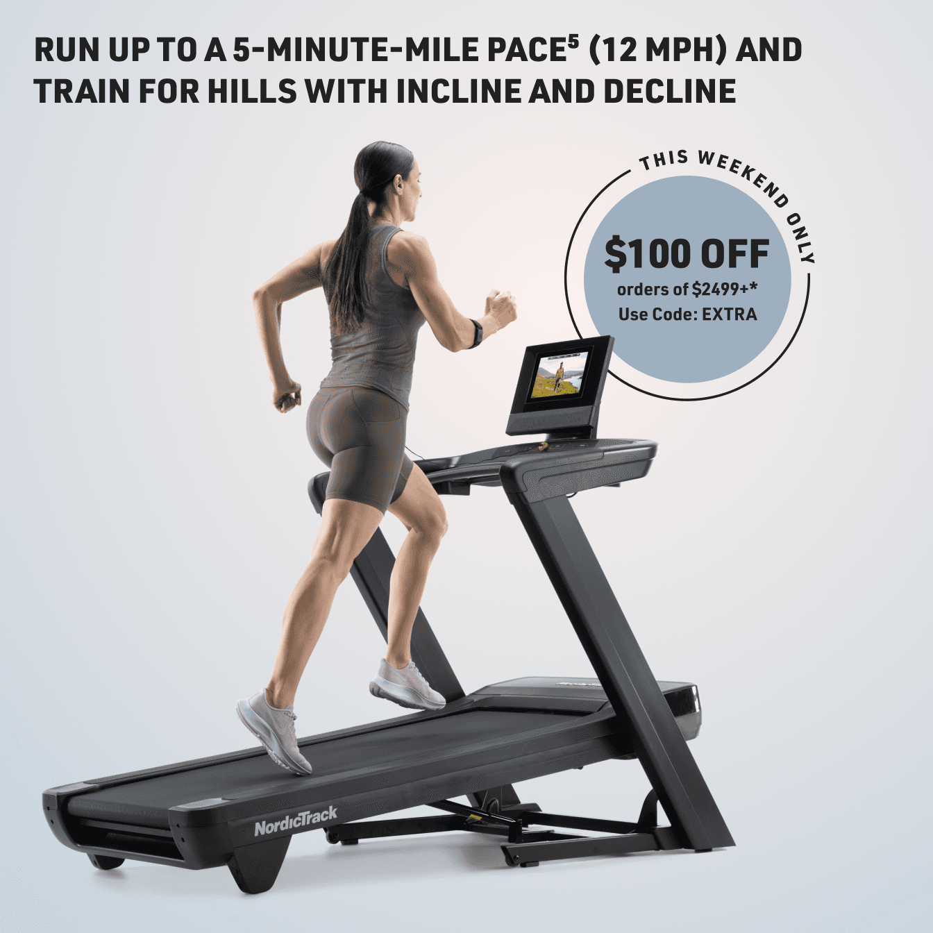 *Extra $100 off orders $2,499+ (“Offer”) available only from October 3, 2025 until October 6, 2025 @ 11:59PM MST for U.S. residents, 18+. Discount only applies to the subtotal of order at www.nordictrack.com and will not apply to taxes or shipping or other charges. Offer is not transferable, substitutable, not redeemable for cash or account credit, has no cash value, and will not be applied retroactively. Void where prohibited. Must enter EXTRA promo code at checkout to obtain discount. Limit one per customer. NordicTrack reserves the right to end, revise, modify, or extend this Offer or its terms at any time without notice. NordicTrack is not responsible for any Offer errors, including tech errors.