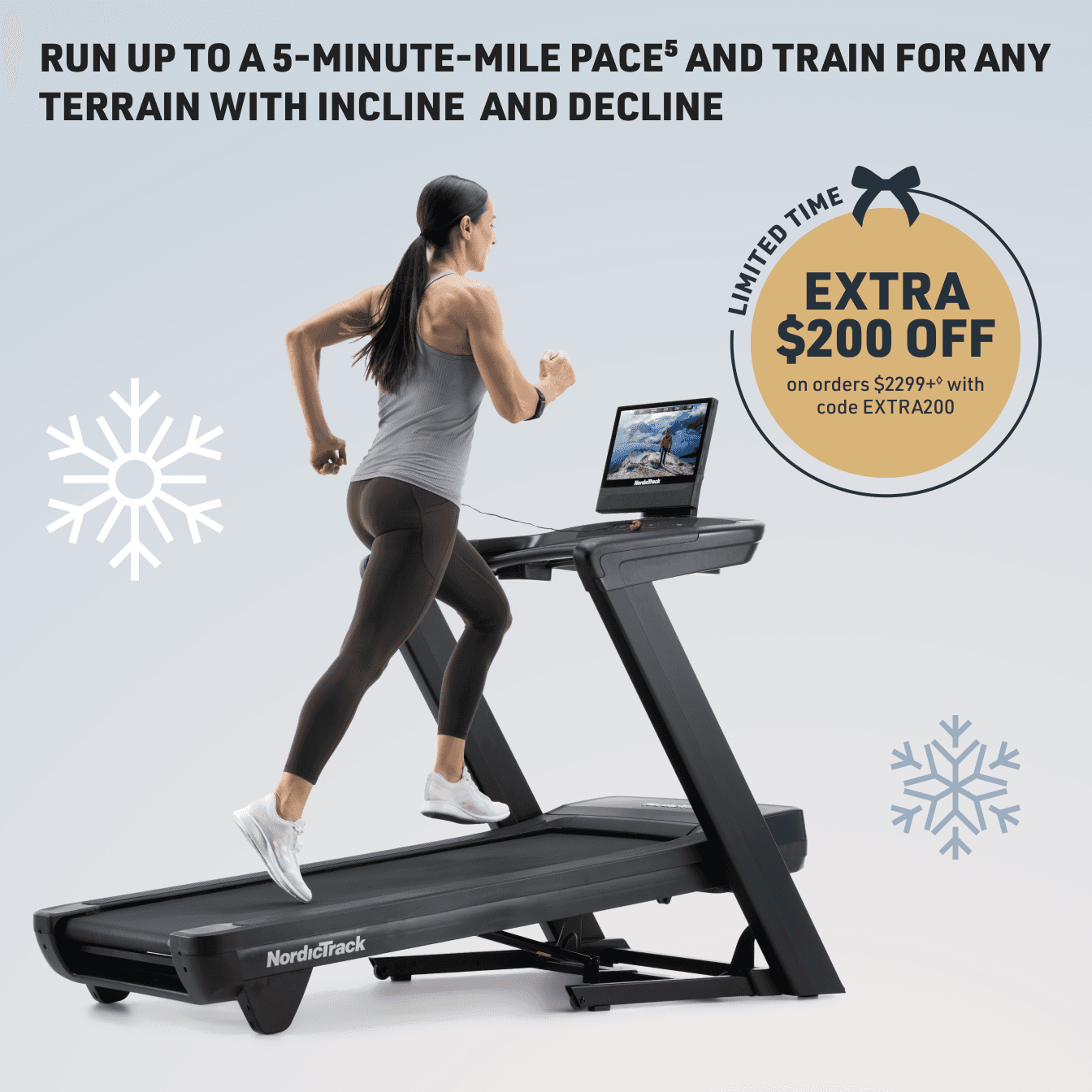 ◊Extra $200 off orders $2,299+ offer (“Offer”) available December 21, 2025 through December 22, 2025 until 11:59PM MST for U.S. residents, 18+. Discount only applies to the subtotal of order at Home and Exercise Equipment by NordicTrack - Treadmills, Ellipticals, and More and will not apply to taxes or shipping or other charges. Offer is not transferable, substitutable, not redeemable for cash or account credit, has no cash value, and will not be applied retroactively. Void where prohibited. Must enter EXTRA200 promo code at checkout to obtain discount. Limit one per customer. Offer excludes Ultra Series products. NordicTrack reserves the right to end, revise, modify, or extend this Offer or its terms at any time without notice. NordicTrack is not responsible for any Offer errors, including tech errors.