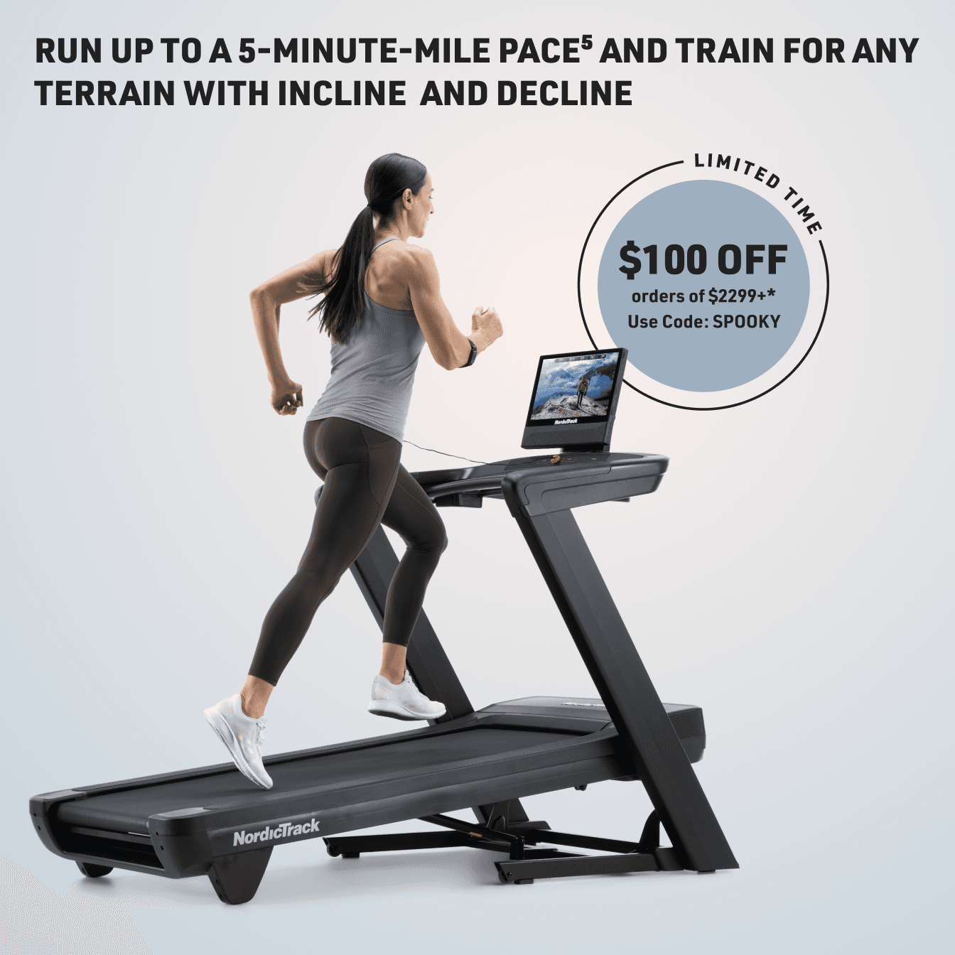*Extra $100 off orders $2,299+ offer (“Offer”) available only from October 25, 2025 until October 27, 2025 @ 11:59PM MST for U.S. residents, 18+. Discount only applies to the subtotal of order at Home and Exercise Equipment by NordicTrack - Treadmills, Ellipticals, and More and will not apply to taxes or shipping or other charges. Offer is not transferable, substitutable, not redeemable for cash or account credit, has no cash value, and will not be applied retroactively. Void where prohibited. Must enter SPOOKY promo code at checkout to obtain discount. Limit one per customer. NordicTrack reserves the right to end, revise, modify, or extend this Offer or its terms at any time without notice. NordicTrack is not responsible for any Offer errors, including tech errors.