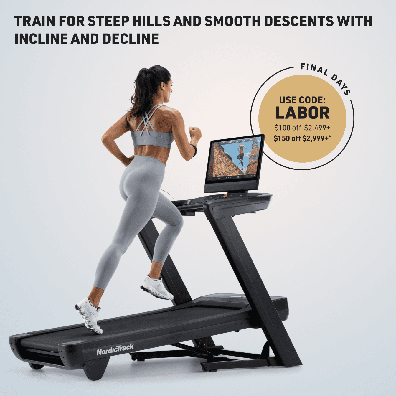 *Extra $100 off orders $2,499+ or extra $150 off orders $2,999+ offer (“Offer”) available only from August 28, 2025 until September 1, 2025 @ 11:59PM MST for U.S. residents, 18+. Discount only applies to the subtotal of order at www.nordictrack.com and will not apply to taxes or shipping or other charges. Offer is not transferable, substitutable, not redeemable for cash or account credit, has no cash value, and will not be applied retroactively. Void where prohibited. Must enter LABOR promo code at checkout to obtain discount. Limit one per customer. NordicTrack reserves the right to end, revise, modify, or extend this Offer or its terms at any time without notice. NordicTrack is not responsible for any Offer errors, including tech errors.