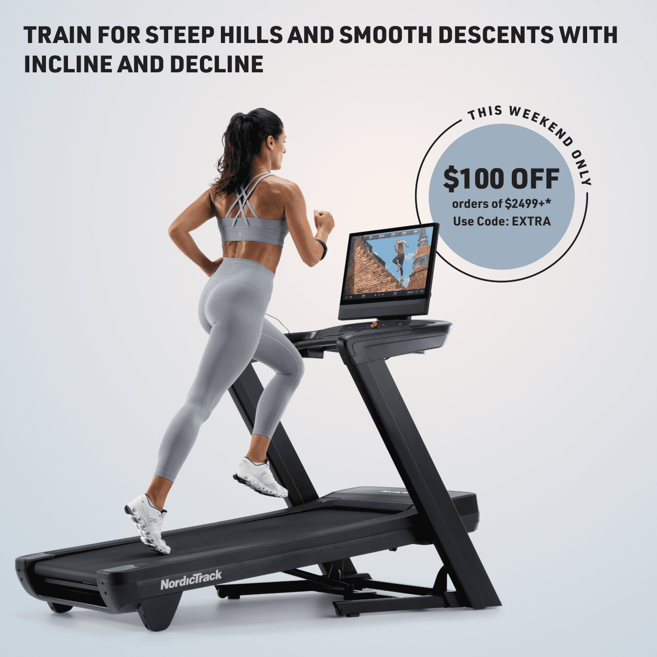 *Extra $100 off orders $2,499+ (“Offer”) available only from October 3, 2025 until October 6, 2025 @ 11:59PM MST for U.S. residents, 18+. Discount only applies to the subtotal of order at www.nordictrack.com and will not apply to taxes or shipping or other charges. Offer is not transferable, substitutable, not redeemable for cash or account credit, has no cash value, and will not be applied retroactively. Void where prohibited. Must enter EXTRA promo code at checkout to obtain discount. Limit one per customer. NordicTrack reserves the right to end, revise, modify, or extend this Offer or its terms at any time without notice. NordicTrack is not responsible for any Offer errors, including tech errors.