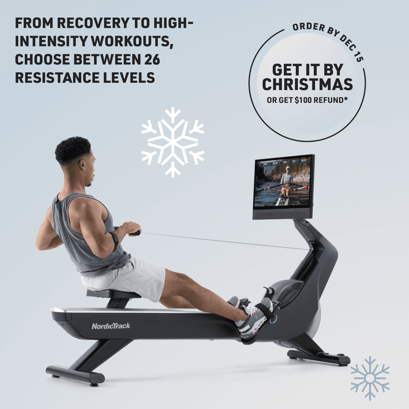 *“Get It Before Christmas” offer (“Offer”) valid on qualifying, in-stock purchases with in-home assembly through 12/13/2025 at 11:59 p.m. MST and standard delivery made through 12/15/2025 at 11:59 p.m. MST for residents in the Continental U.S., 18+. If the qualifying equipment purchased through the Offer is not received at the shipping address provided at the time of purchase in the Continental U.S. before December 24, 2025 at 11:59 p.m. MST (“Delivery Deadline”), the purchaser may receive a $100 refund on the purchase price for the qualifying equipment, subject to the following exceptions: the Offer will be void if (a) an attempted delivery or an offer by the carrier of a delivery appointment on or before the Delivery Deadline is made; or (b) unforeseen circumstances outside of NordicTrack’s reasonable control, including strikes, natural disasters, or severe weather, prevent NordicTrack from meeting the Delivery Deadline. The Offer is limited to non-PO addresses in the Continental U.S. To redeem the $100 refund, the purchaser must contact NordicTrack’s Customer Care team at 1-800-862-3348 by no later than 5 PM MST on December 31, 2025. After this time, the Offer will expire and purchasers will no longer be able to receive the $100 refund. Offer is not transferable or substitutable, not redeemable for cash or account credit, may not be combined with other offers, has no cash value, and will not be applied retroactively. Void where prohibited by law. iFIT reserves the right to end, revise, modify, or extend the Offer or its terms at any time without notice. NordicTrack shall not be responsible for any Offer errors, including tech errors. Please include your order number as part of the refund request and allow 8 to 12 weeks for processing.