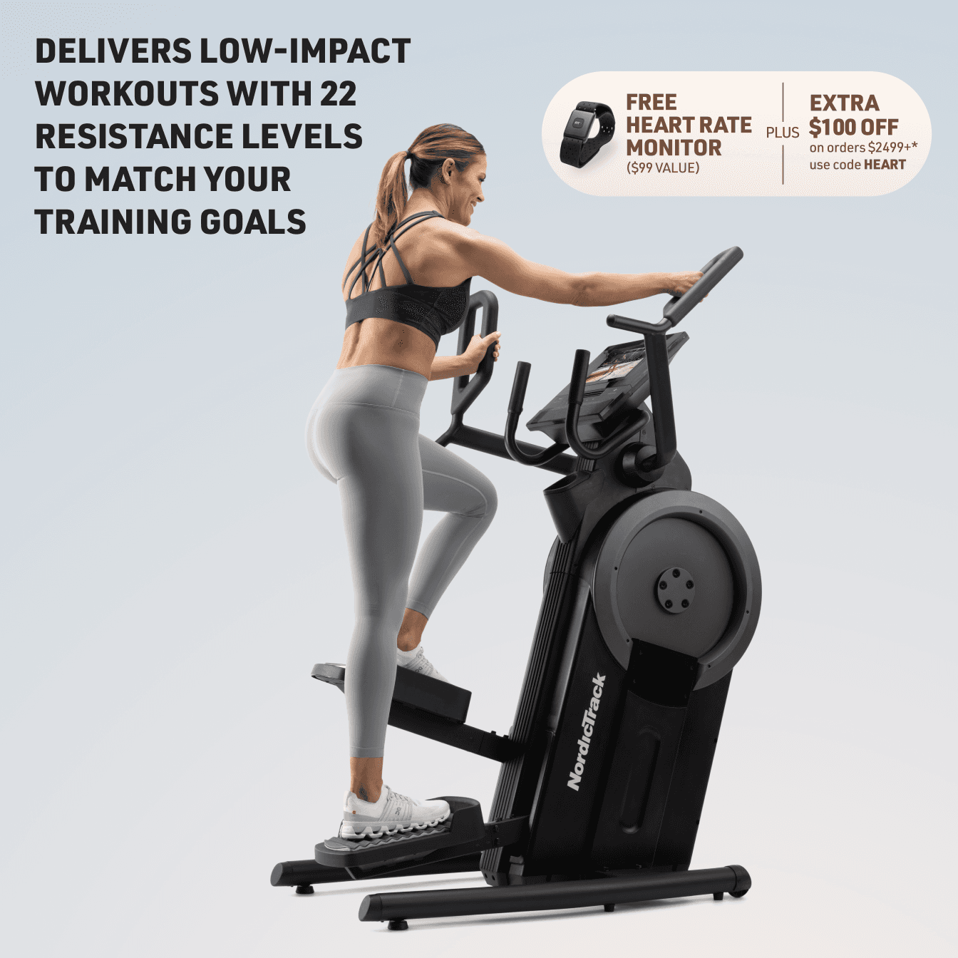 Hit your goals with low-impact, stair-stepping workouts. Build lower body strength with 22 resistance levels for optimal glute and quad activation. Paired with iFIT, immerse yourself in stunning workouts around the world on our 10” touchscreen.