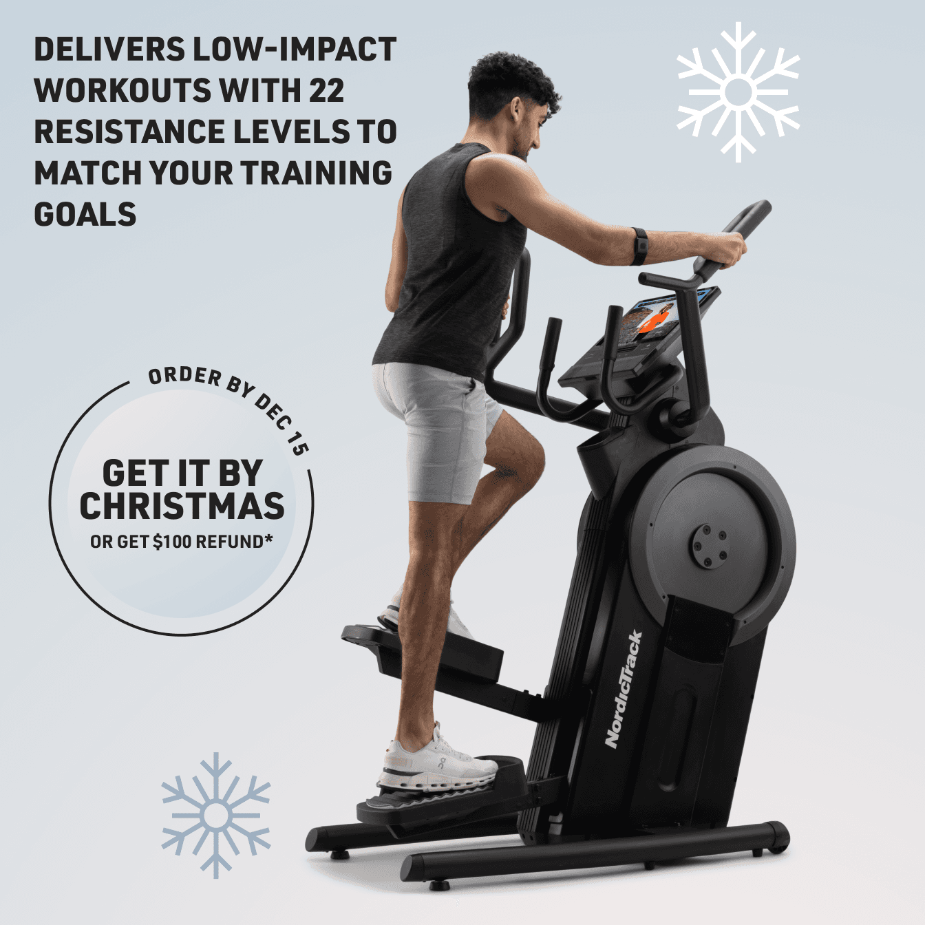 *“Get It Before Christmas” offer (“Offer”) valid on qualifying, in-stock purchases with in-home assembly through 12/13/2025 at 11:59 p.m. MST and standard delivery made through 12/15/2025 at 11:59 p.m. MST for residents in the Continental U.S., 18+. If the qualifying equipment purchased through the Offer is not received at the shipping address provided at the time of purchase in the Continental U.S. before December 24, 2025 at 11:59 p.m. MST (“Delivery Deadline”), the purchaser may receive a $100 refund on the purchase price for the qualifying equipment, subject to the following exceptions: the Offer will be void if (a) an attempted delivery or an offer by the carrier of a delivery appointment on or before the Delivery Deadline is made; or (b) unforeseen circumstances outside of NordicTrack’s reasonable control, including strikes, natural disasters, or severe weather, prevent NordicTrack from meeting the Delivery Deadline. The Offer is limited to non-PO addresses in the Continental U.S. To redeem the $100 refund, the purchaser must contact NordicTrack’s Customer Care team at 1-800-862-3348 by no later than 5 PM MST on December 31, 2025. After this time, the Offer will expire and purchasers will no longer be able to receive the $100 refund. Offer is not transferable or substitutable, not redeemable for cash or account credit, may not be combined with other offers, has no cash value, and will not be applied retroactively. Void where prohibited by law. iFIT reserves the right to end, revise, modify, or extend the Offer or its terms at any time without notice. NordicTrack shall not be responsible for any Offer errors, including tech errors. Please include your order number as part of the refund request and allow 8 to 12 weeks for processing.