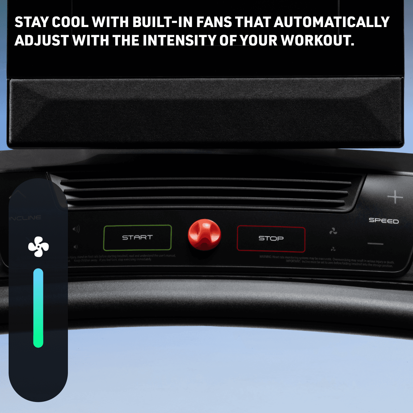 THE AUTOBREEZE™ FAN AUTOMATICALLY ADJUSTS WITH THE INTENSITY OF YOUR WORKOUT TO KEEP YOU COOL.