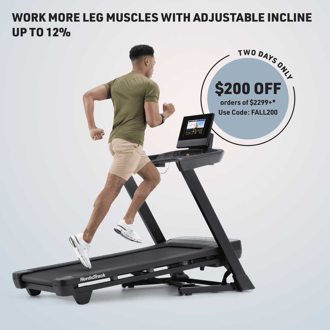 *Extra $200 off orders $2,299+ offer (“Offer”) available only from October 23, 2025 until October 24, 2025 @ 11:59PM MST for U.S. residents, 18+. Discount only applies to the subtotal of order at www.nordictrack.com and will not apply to taxes or shipping or other charges. Offer is not transferable, substitutable, not redeemable for cash or account credit, has no cash value, and will not be applied retroactively. Void where prohibited. Must enter FALL200 promo code at checkout to obtain discount. Limit one per customer. NordicTrack reserves the right to end, revise, modify, or extend this Offer or its terms at any time without notice. NordicTrack is not responsible for any Offer errors, including tech errors.