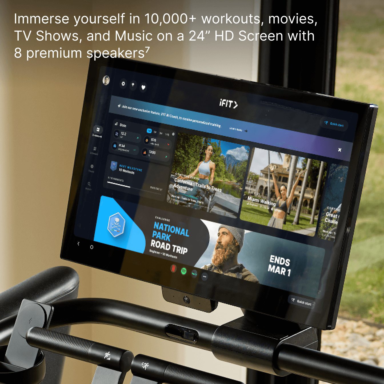 24” touchscreen for trainer-led workouts & streaming with iFITUltra 1 is a smart treadmill that adjusts for you. Just press start and iFIT does the rest.¹
