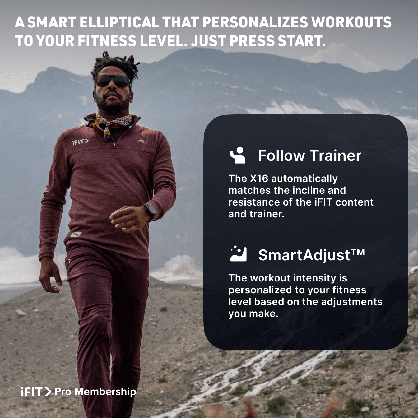 Realistic training with a 10% incline to -10% declineTHE X16 SMART ELLIPTICAL ADJUSTS FOR YOU. JUST PRESS START AND IFIT DOES THE REST.¹