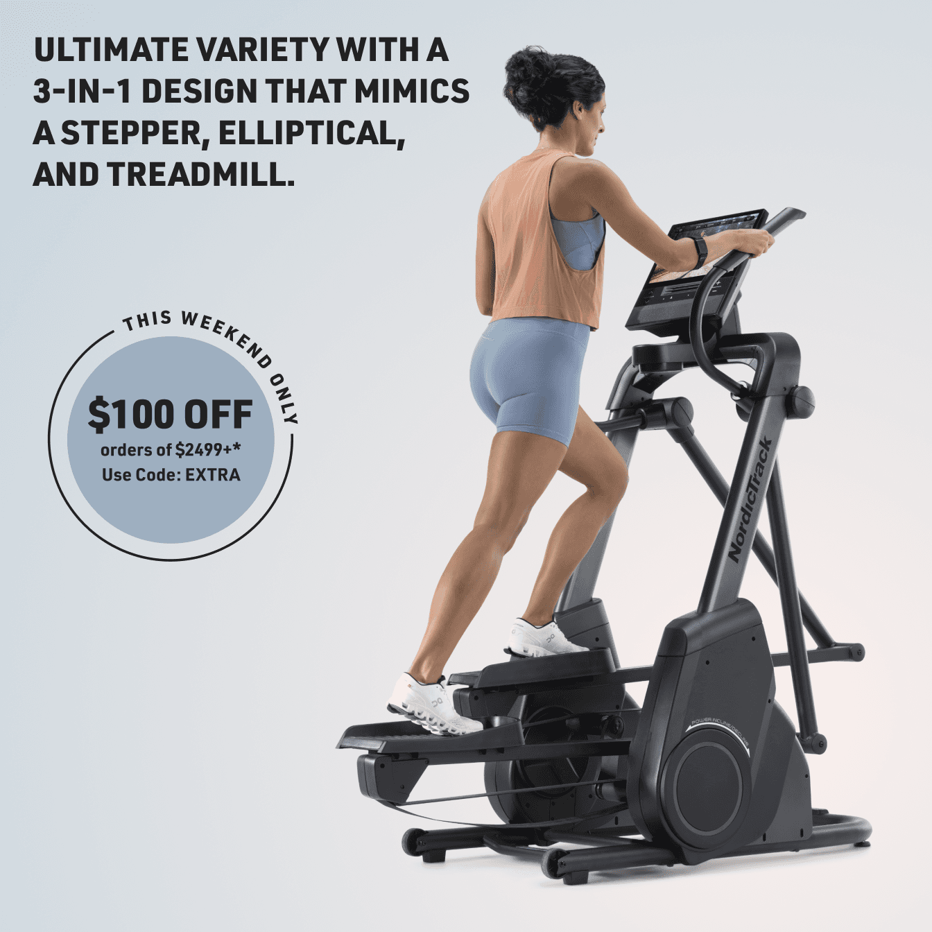 *Extra $100 off orders $2,499+ (“Offer”) available only from October 3, 2025 until October 6, 2025 @ 11:59PM MST for U.S. residents, 18+. Discount only applies to the subtotal of order at www.nordictrack.com and will not apply to taxes or shipping or other charges. Offer is not transferable, substitutable, not redeemable for cash or account credit, has no cash value, and will not be applied retroactively. Void where prohibited. Must enter EXTRA promo code at checkout to obtain discount. Limit one per customer. NordicTrack reserves the right to end, revise, modify, or extend this Offer or its terms at any time without notice. NordicTrack is not responsible for any Offer errors, including tech errors.