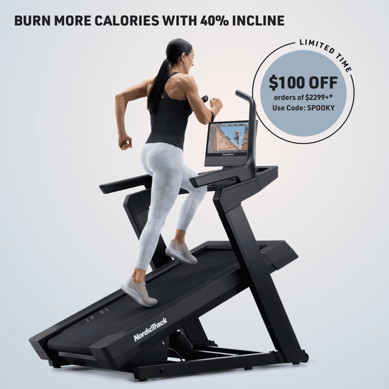 *Extra $100 off orders $2,299+ offer (“Offer”) available only from October 25, 2025 until October 27, 2025 @ 11:59PM MST for U.S. residents, 18+. Discount only applies to the subtotal of order at Home and Exercise Equipment by NordicTrack - Treadmills, Ellipticals, and More and will not apply to taxes or shipping or other charges. Offer is not transferable, substitutable, not redeemable for cash or account credit, has no cash value, and will not be applied retroactively. Void where prohibited. Must enter SPOOKY promo code at checkout to obtain discount. Limit one per customer. NordicTrack reserves the right to end, revise, modify, or extend this Offer or its terms at any time without notice. NordicTrack is not responsible for any Offer errors, including tech errors.