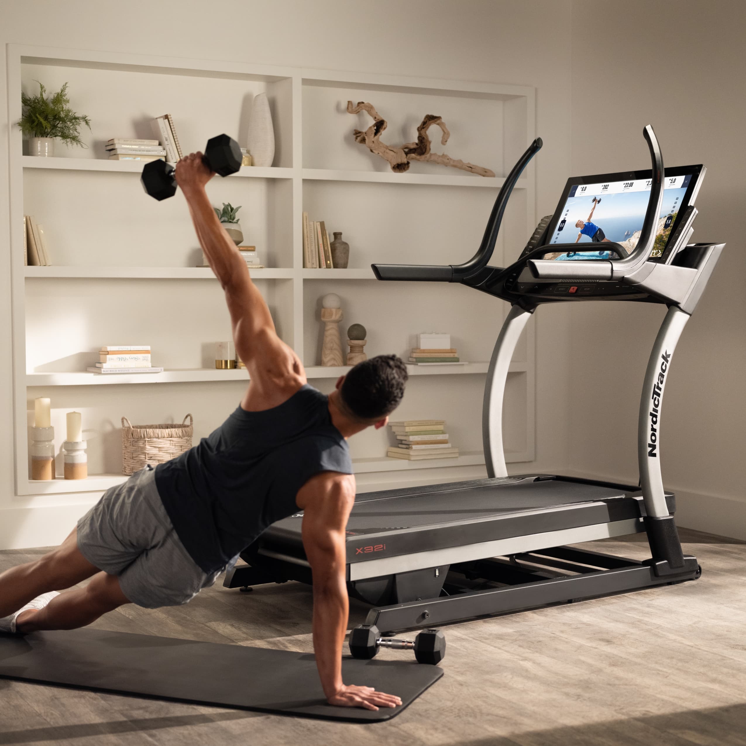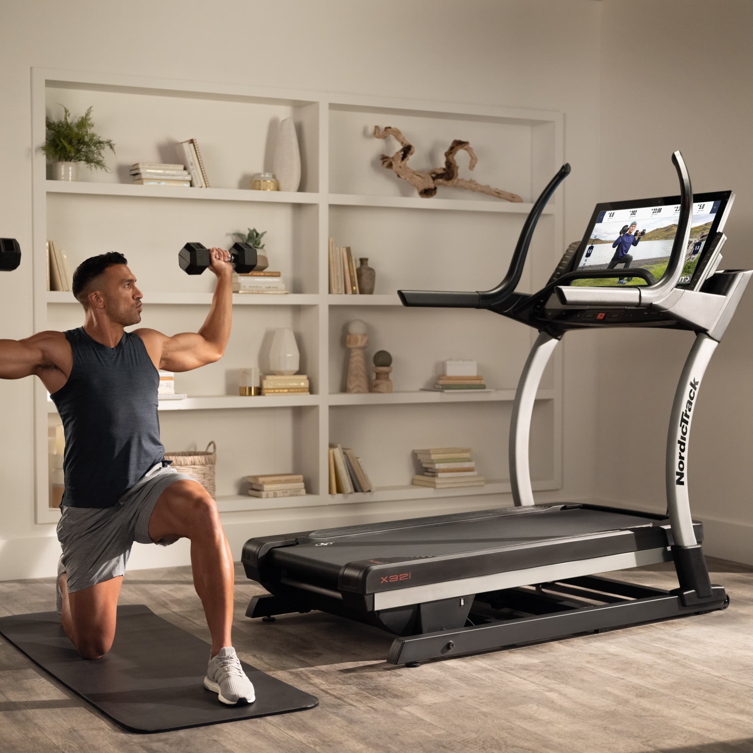 Tilt the 32” screen to round out your home gym with 1,000s of iFIT workouts – from HIIT to yoga.