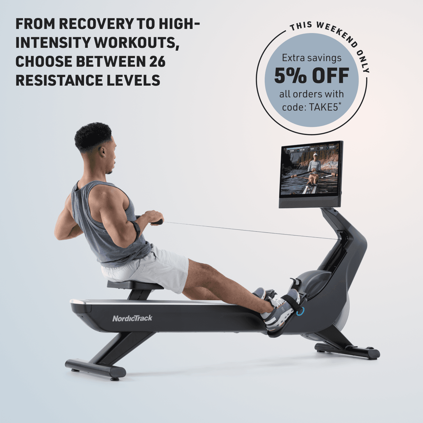 *Extra 5% off all orders (“Offer”) available only from October 17, 2025 until October 20, 2025 @ 11:59PM MST for U.S. residents, 18+. Excludes Ultra 1 and Ultra 3. Discount only applies to the subtotal of order at Home and Exercise Equipment by NordicTrack - Treadmills, Ellipticals, and More and will not apply to taxes or shipping or other charges. Offer is not transferable, substitutable, not redeemable for cash or account credit, has no cash value, and will not be applied retroactively. Void where prohibited. Must enter TAKE5 promo code at checkout to obtain discount. Limit one per customer. NordicTrack reserves the right to end, revise, modify, or extend this Offer or its terms at any time without notice. NordicTrack is not responsible for any Offer errors, including tech errors.