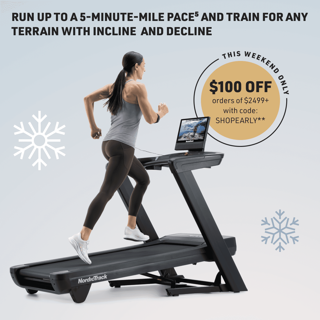 **Extra $100 off orders $2,4299+ offer (“Offer”) available only from November 14, 2025 until November 17, 2025 @ 11:59PM MST for U.S. residents, 18+. Discount only applies to the subtotal of order at www.nordictrack.com and will not apply to taxes or shipping or other charges. Offer is not transferable, substitutable, not redeemable for cash or account credit, has no cash value, and will not be applied retroactively. Void where prohibited. Must enter SHOPEARLY promo code at checkout to obtain discount. Limit one per customer. NordicTrack reserves the right to end, revise, modify, or extend this Offer or its terms at any time without notice. NordicTrack is not responsible for any Offer errors, including tech errors.