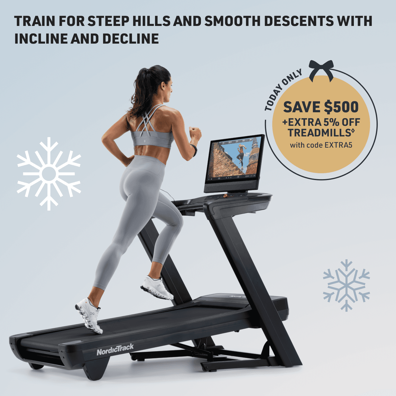 ◊Extra 5% off treadmills offer (“Offer”) available only on December 11, 2025 until 11:59PM MST for U.S. residents, 18+. Discount only applies to the subtotal of order at www.nordictrack.com and will not apply to taxes or shipping or other charges. Offer excludes Ultra 1 and Ultra 3. Offer is not transferable, substitutable, not redeemable for cash or account credit, has no cash value, and will not be applied retroactively. Void where prohibited. Must enter EXTRA5 promo code at checkout to obtain discount. Limit one per customer. NordicTrack reserves the right to end, revise, modify, or extend this Offer or its terms at any time without notice. NordicTrack is not responsible for any Offer errors, including tech errors.