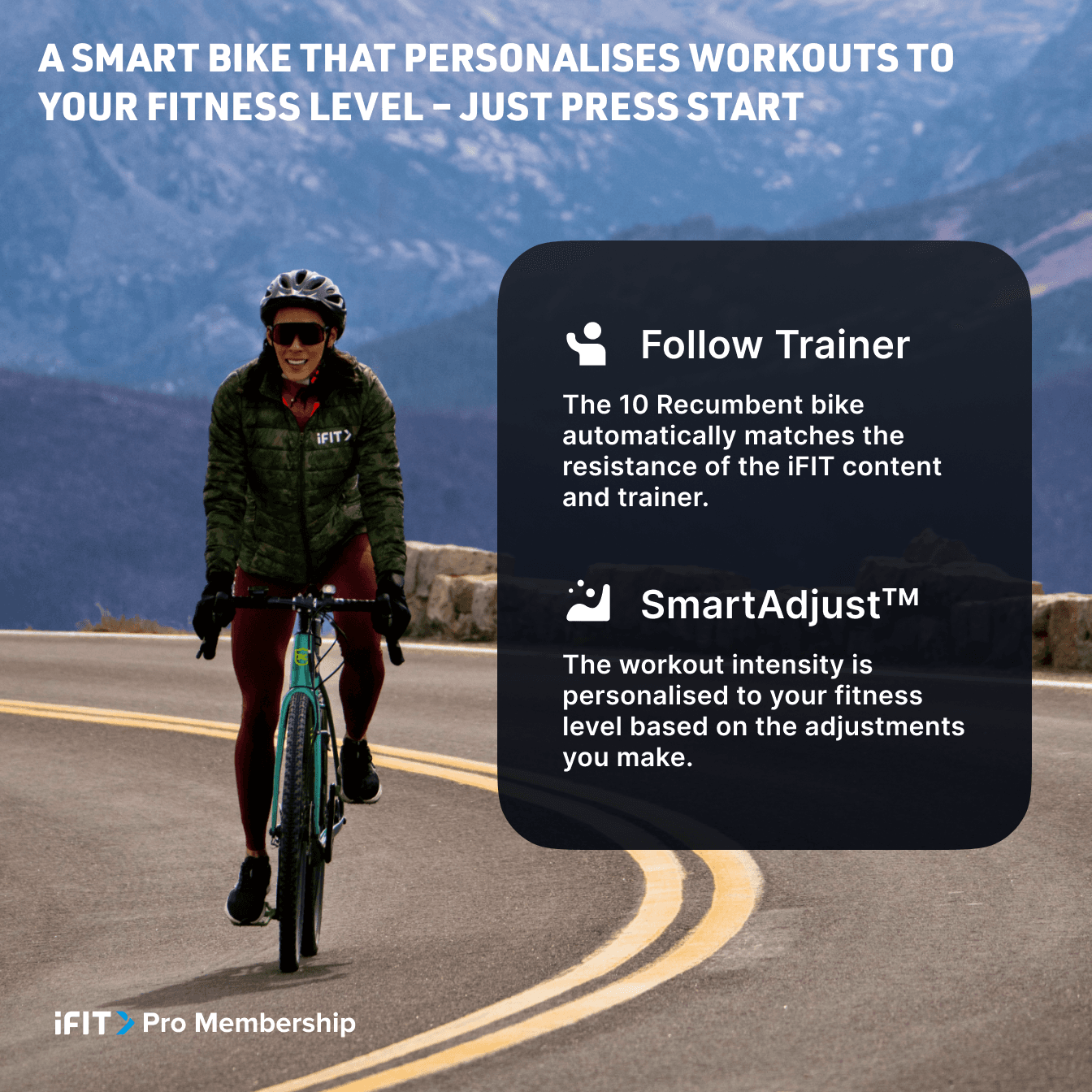 The 10 Recumbent Bike automatically matches the resistance of the iFIT workout. SmartAdjust™ takes it further and personalises each workout to your fitness level based on adjustments you make.