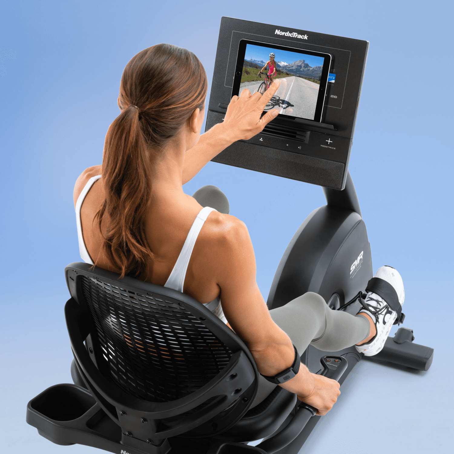 Wide pedals with adjustable straps to fit most shoe sizesThe G LE Recumbent smart bike adjusts to you. Connect your own device, press start, and iFIT does the rest.¹