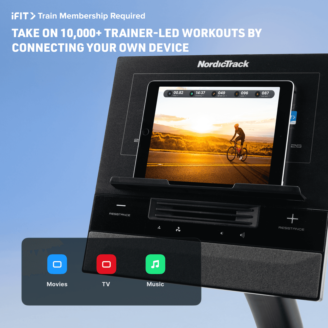Comfortable recovery rides with plenty of resistance for more variety. Connect your own device to follow iFIT Trainers in workouts around the world.