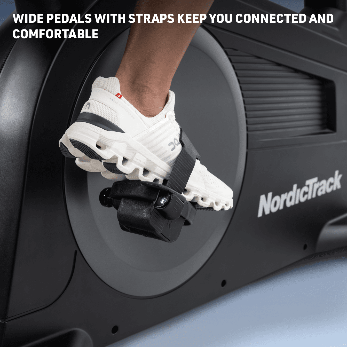 Extra wide ergonomic foot pedals with adjustable straps keep you connected and comfortableThe G LE Upright smart bike adjusts for you. Connect your own device, press start, and iFIT does the rest.¹