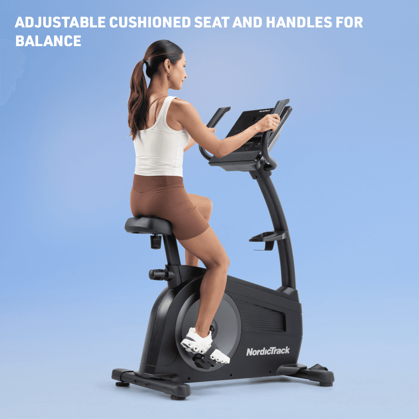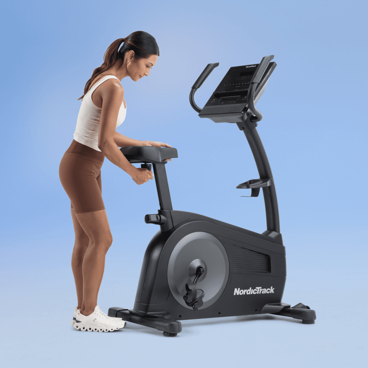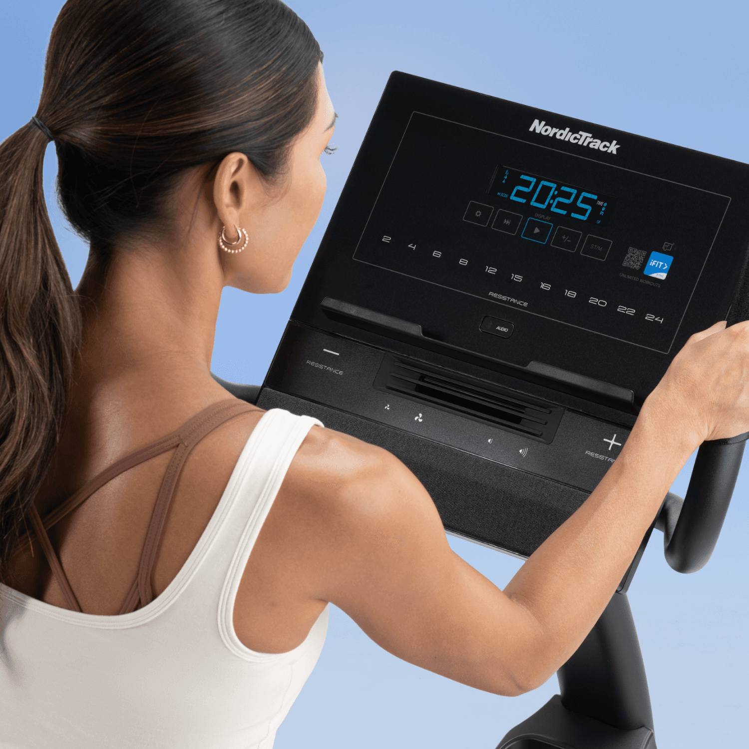 Take on recovery or more intense rides on a bike that keeps you in an upright, comfortable position. Paired with iFIT, expert trainers guide you in workouts around the world.