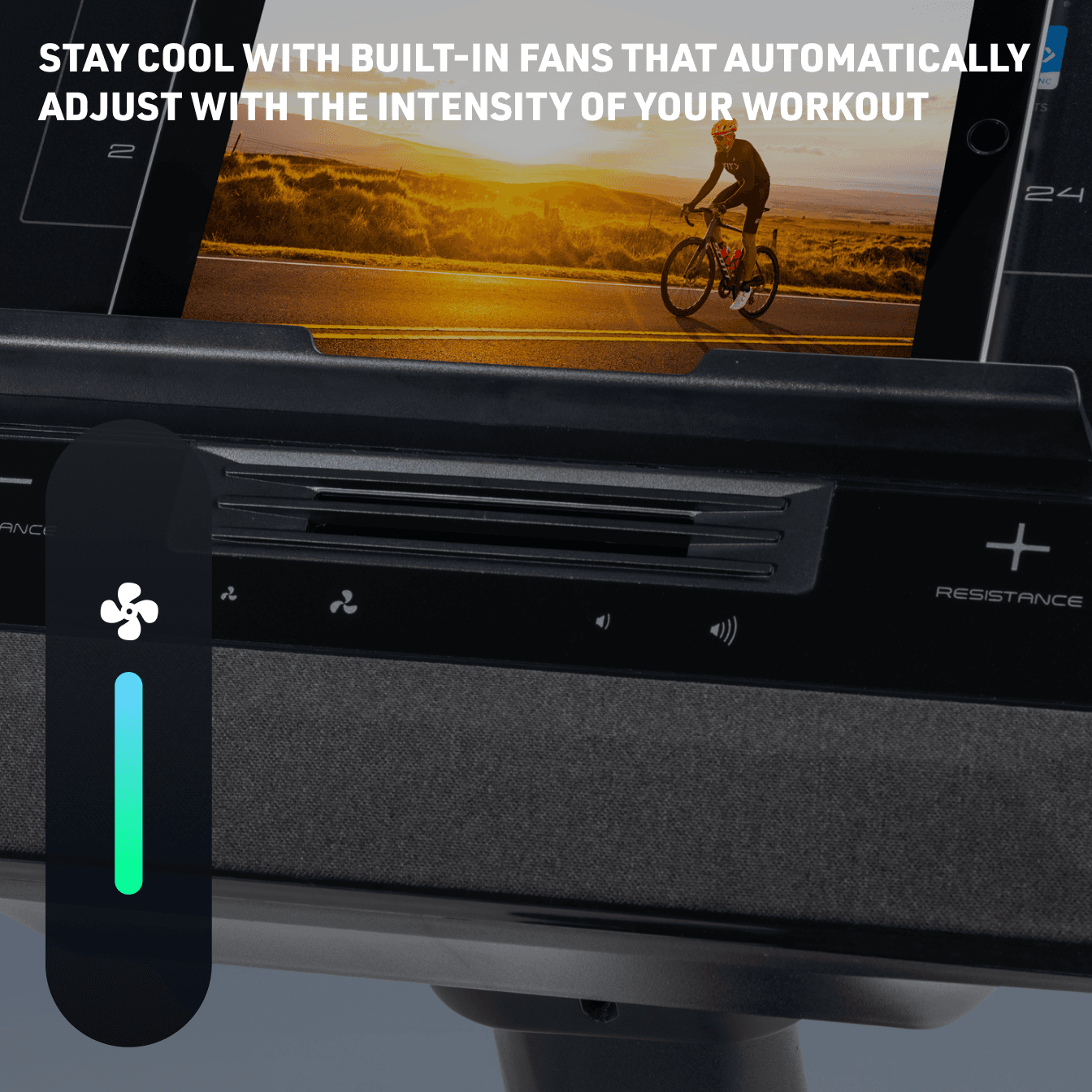 The AutoBreeze™ fan automatically adjusts with the intensity of your workout to keep you cool.