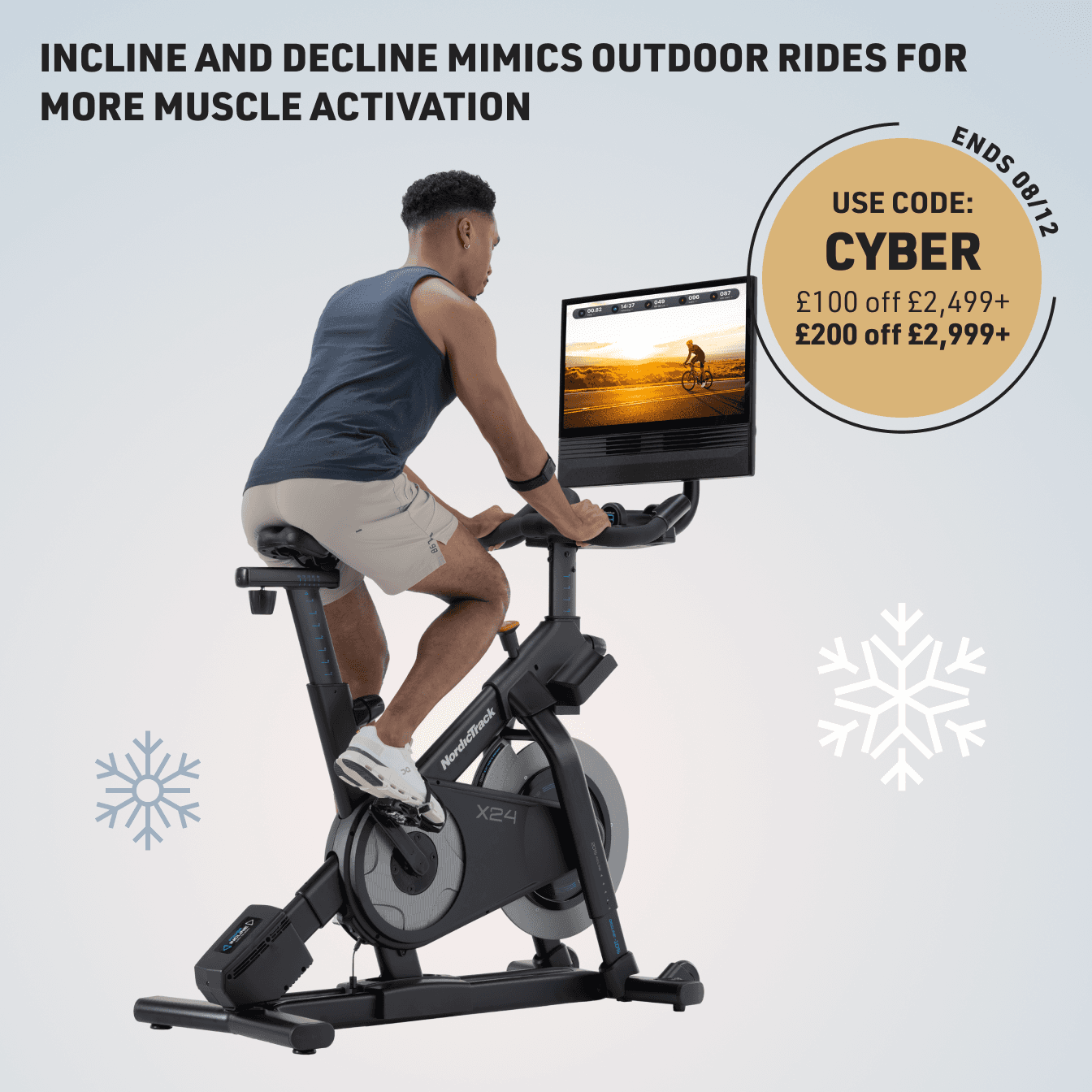 The X24 Studio Bike automatically matches the incline, decline, and resistance of the iFIT workout. SmartAdjust™ takes it further and personalises each workout to your fitness level based on adjustments you make.